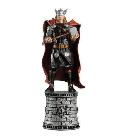Possédant le puissant Mjolnir entre ses mains, le dieu du tonnerre Thor est l'évêque blanc avec la foudre à ses ordres. Thor est l'un des super héros les plus grands et les plus respectés au monde. La pièce d'échecs le représente debout avec confiance avec son marteau et reflète à la fois son pouvoir et sa noblesse en tant que divinité et membre fondateur des Avengers.