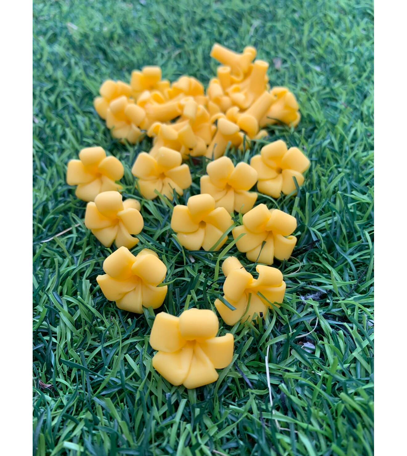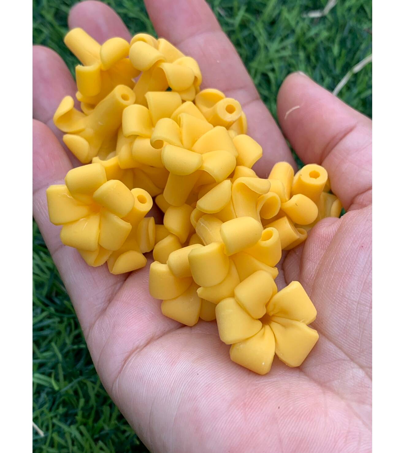 Product Details: Material: air-dry clay Color: Yellow Size: Approximately 2 x 2 cm Type: Flower beads Quantity: 100 pieces)