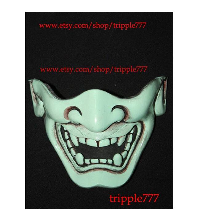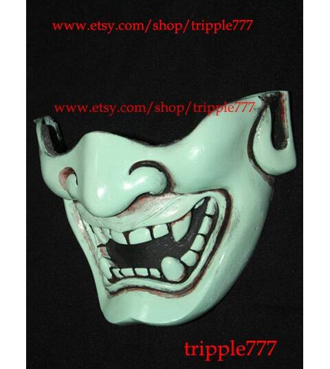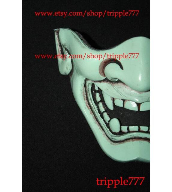 Half Face Airsoft Mask BB Gun Paintball Hannya Kabuki Halloween Costume Cosplay, Japanese Samurai Mempo Noh Evil Demon Oni Ninja Ronin MA126