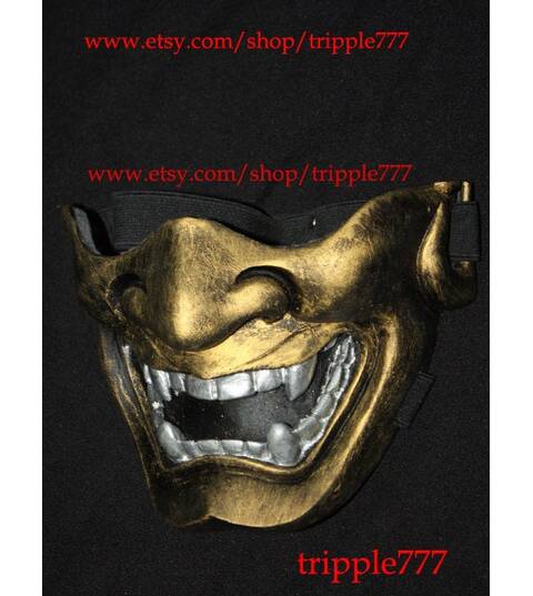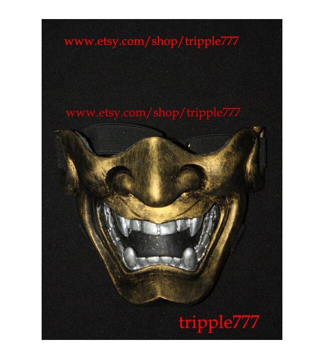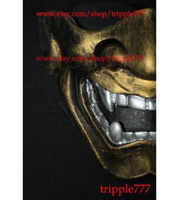 Half Face Airsoft Mask BB Gun Paintball Hannya Kabuki Halloween Costume Cosplay, Japanese Samurai Mempo Noh Evil Demon Oni Ninja Ronin MA132