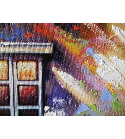 Ancien bâtiment peinture peinture à l'huile sur toile.