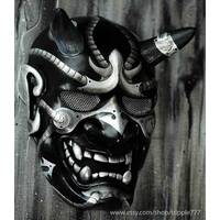 BB Gun Goggle Airsoft Mask, Halloween Costume Cosplay Ninja Samurai Warrior Oni Onimaru Evil Demon Hannya Kabuki Home Decor Wall Mask MA243