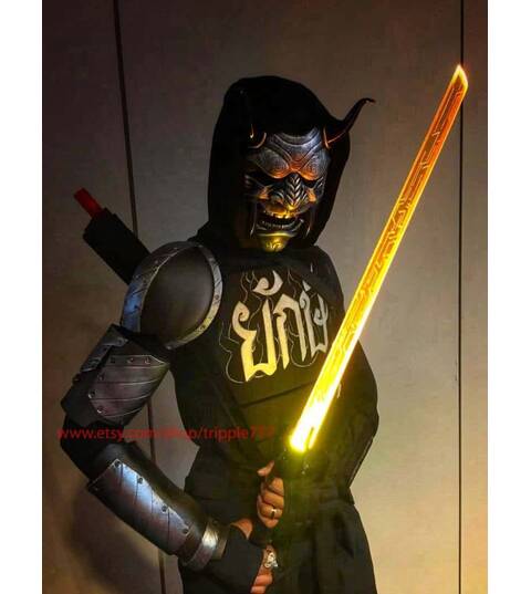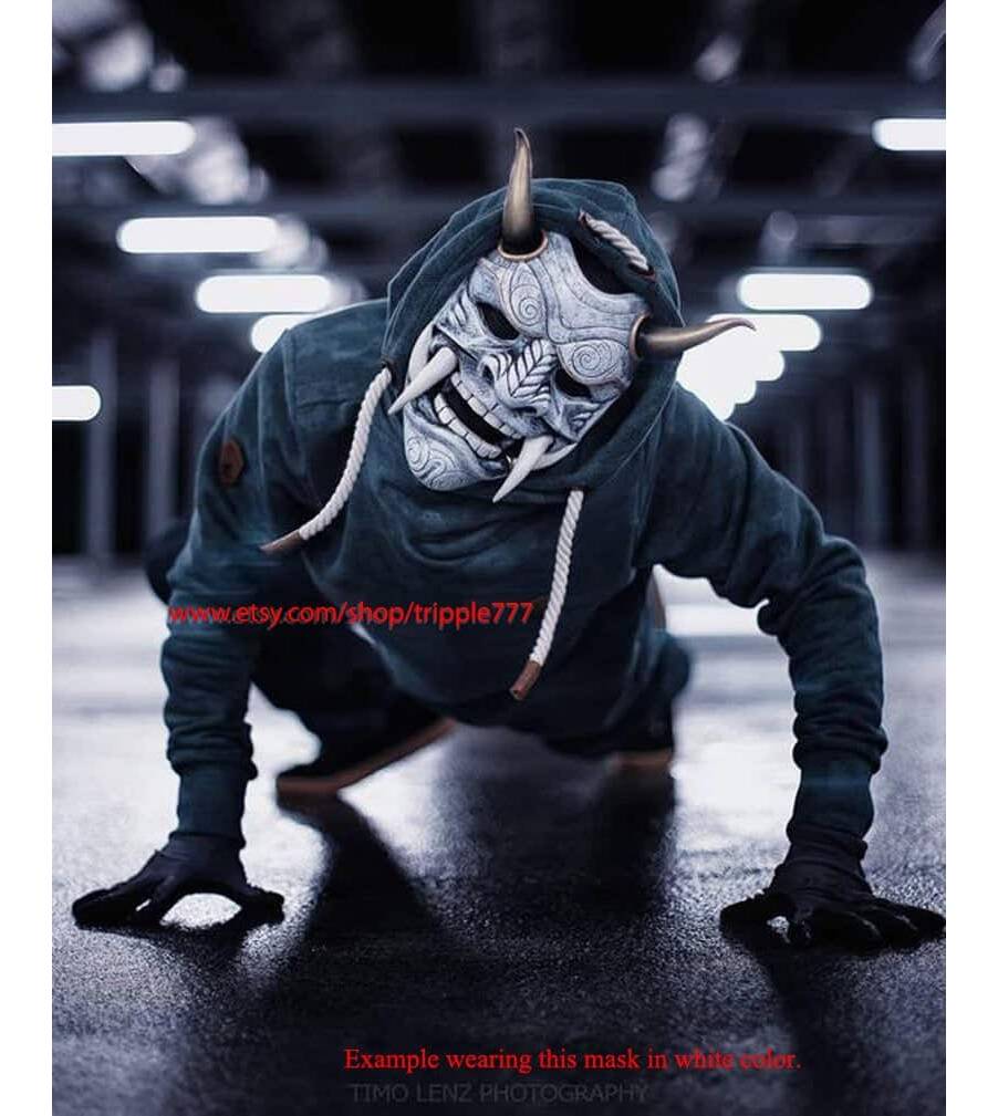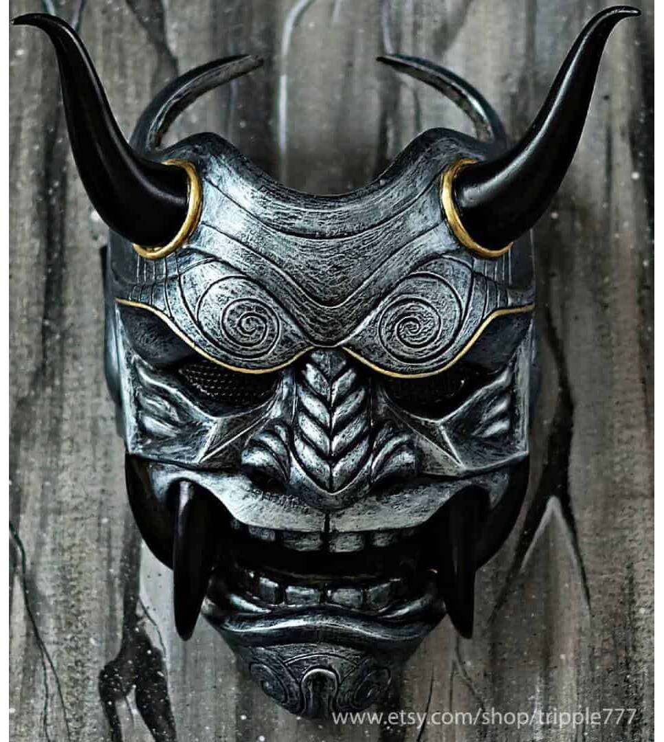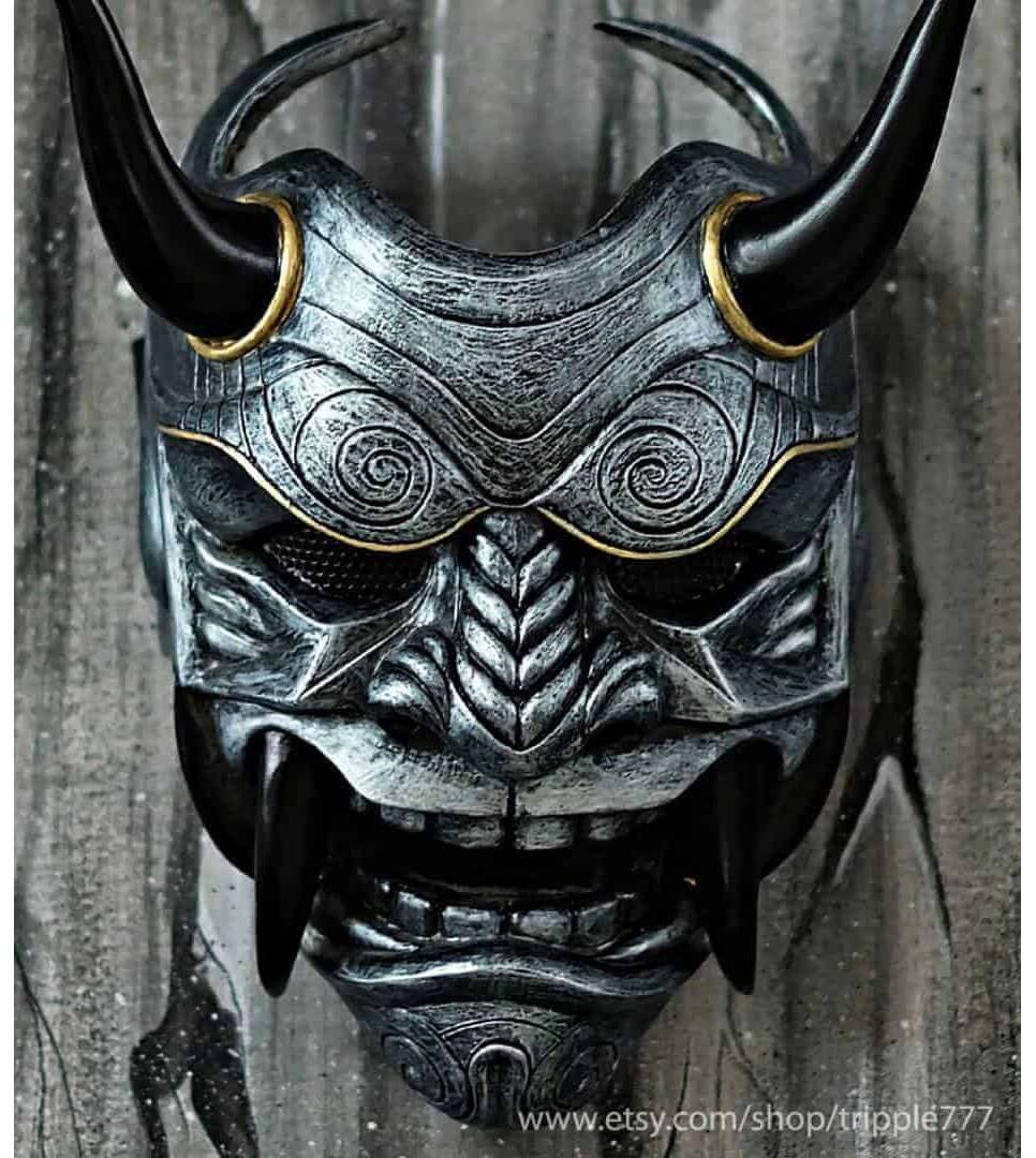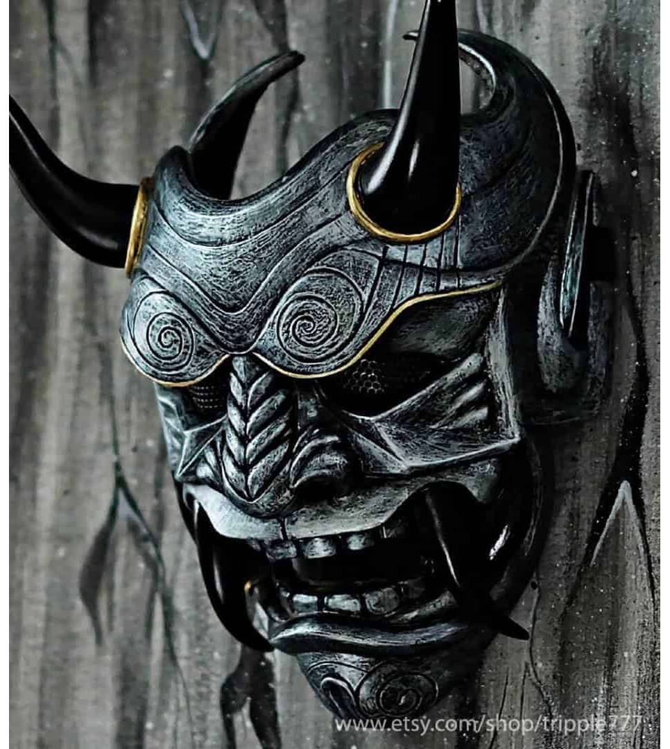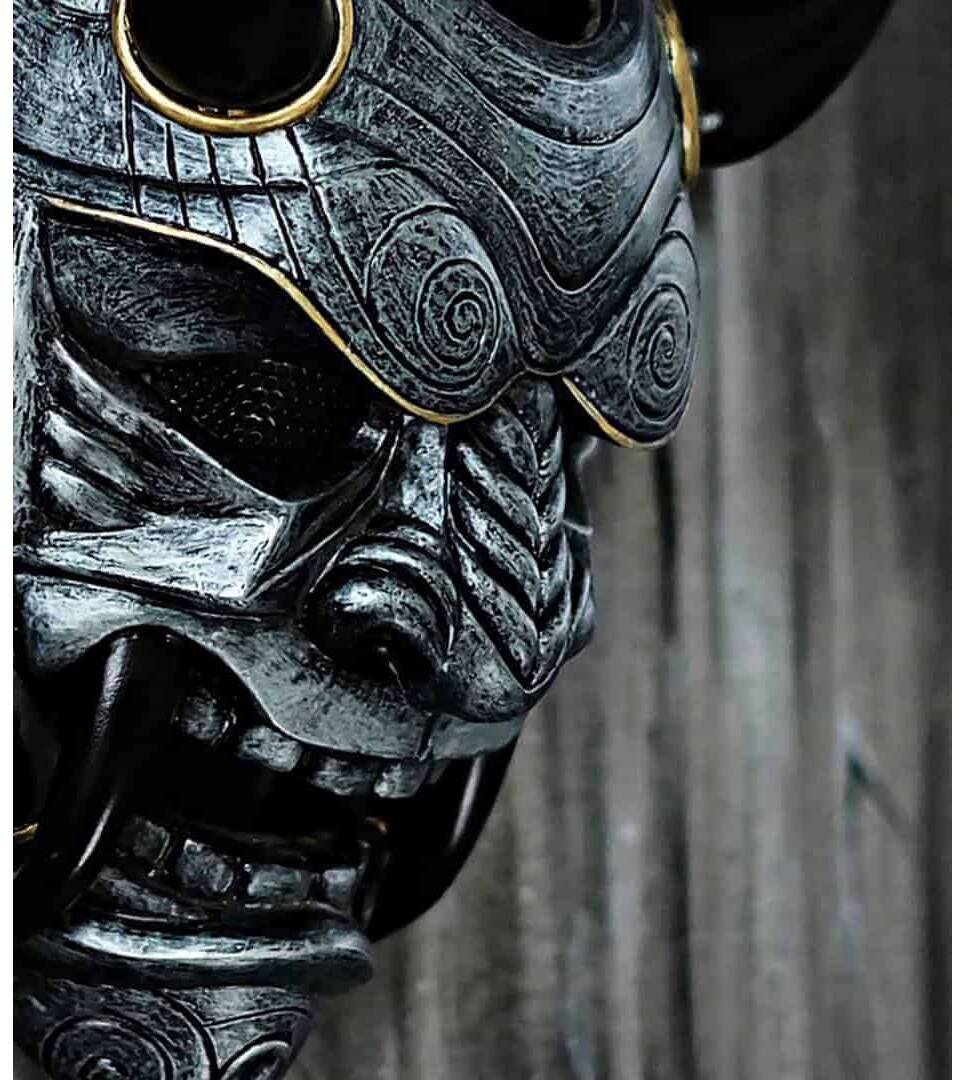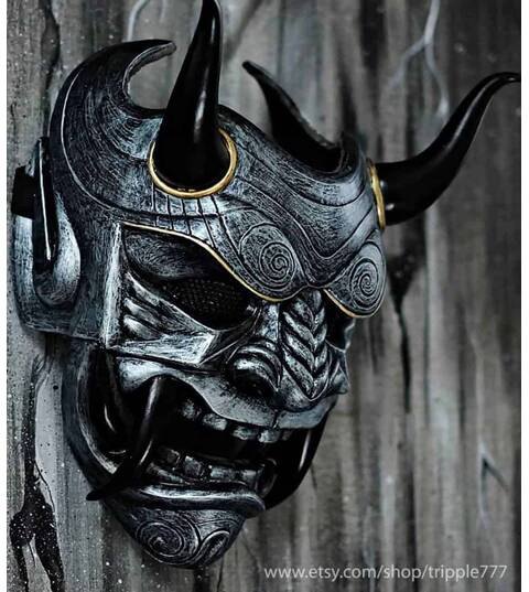 Samurai Assassin Demon Oni BB Gun Airsoft Mask, Halloween Costume Cosplay Ninja Warrior Devil Evil Hannya Kabuki Home Decor Wall Mask DA04