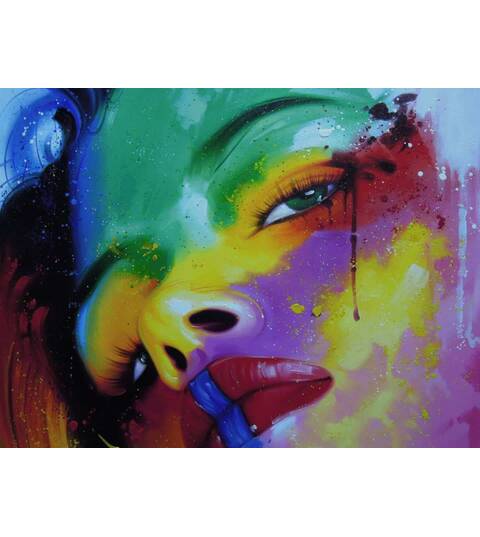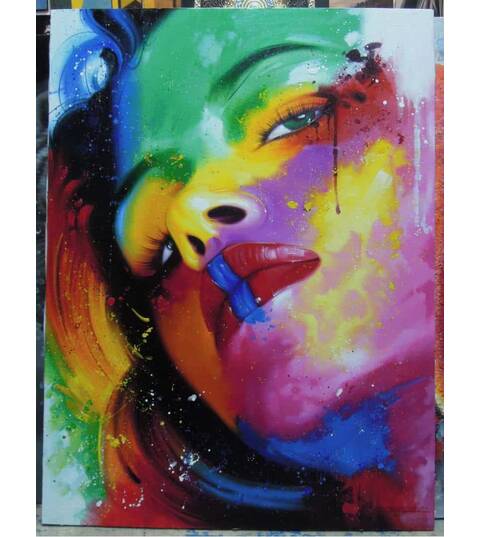 Colorful face painting oil painting on canvas. Size 90X120 cm. The painting is ready and dry for shipping. The paintings have a white border for...