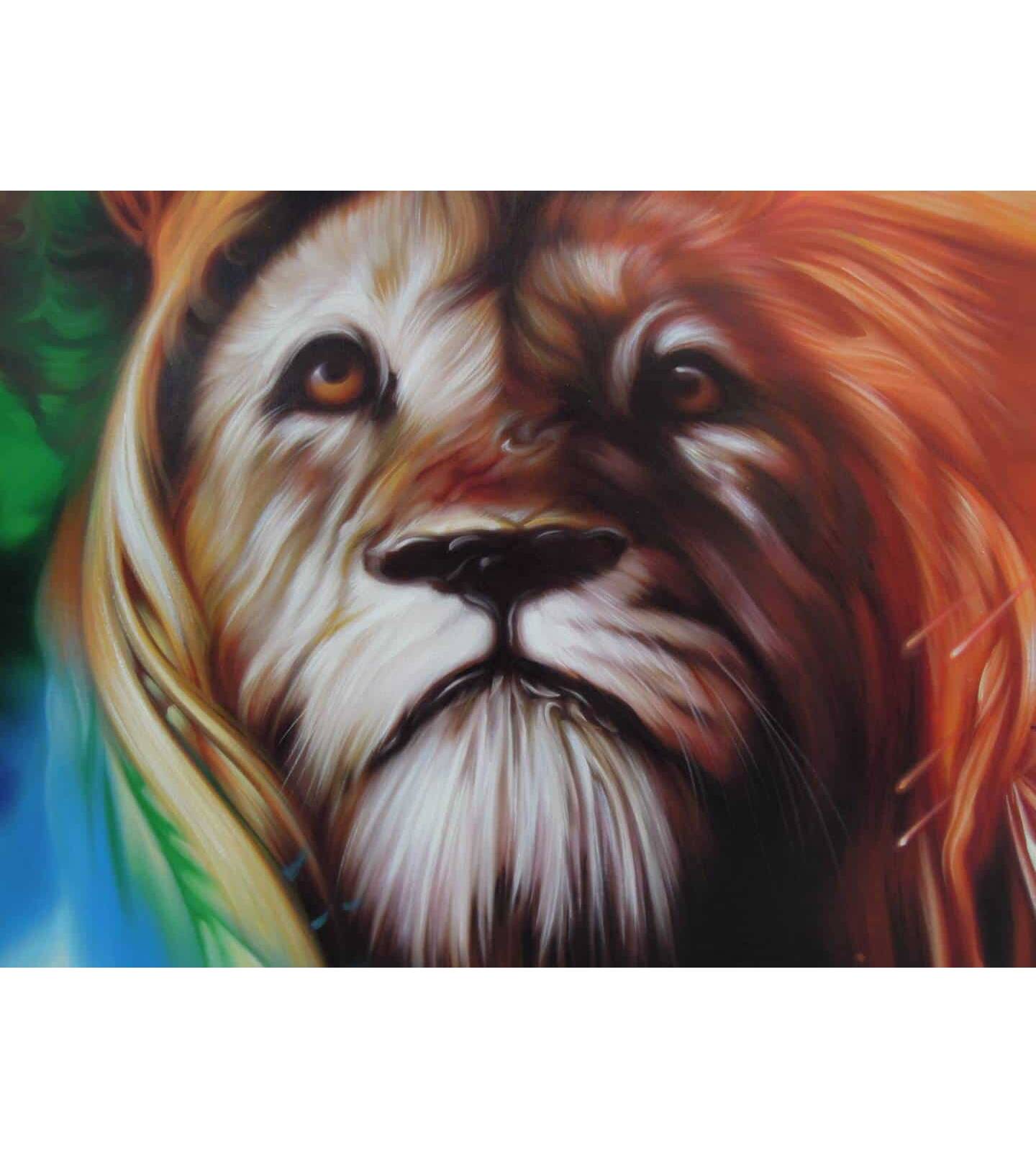 Colorful lion painting oil painting on canvas.