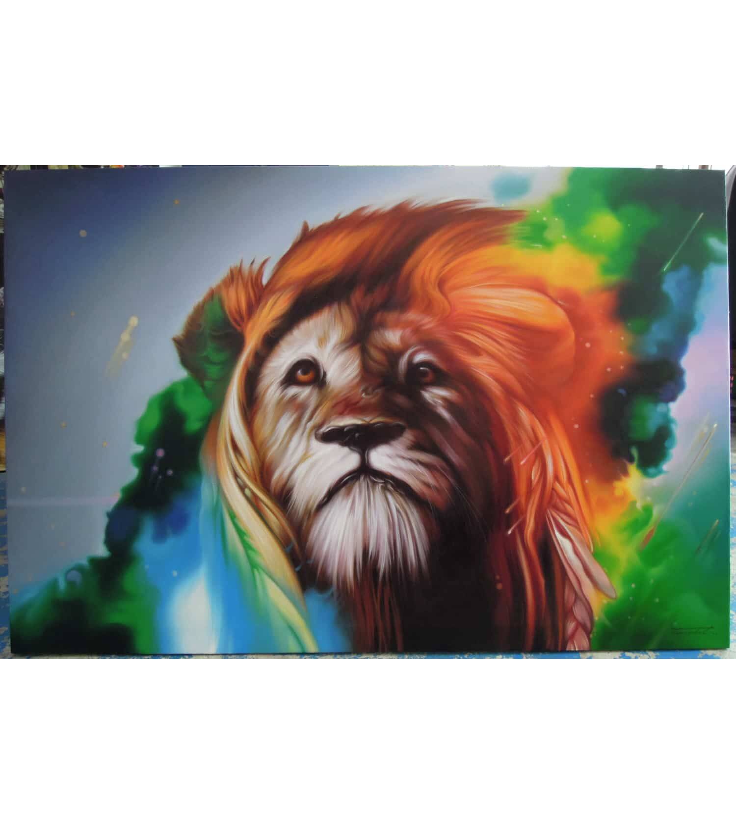 Colorful lion painting oil painting on canvas. Size 80X120 cm. The painting is ready and dry for shipping. The paintings have a white border for...