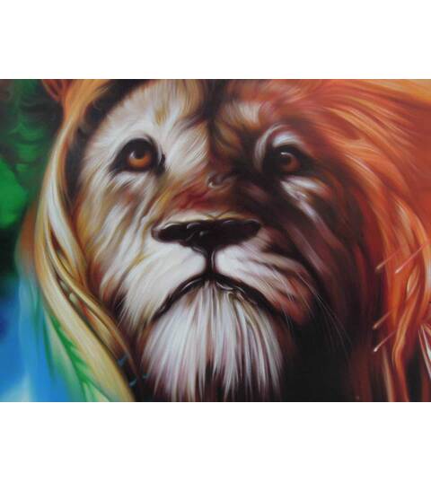 Colorful lion painting oil painting on canvas 80X120 cm.