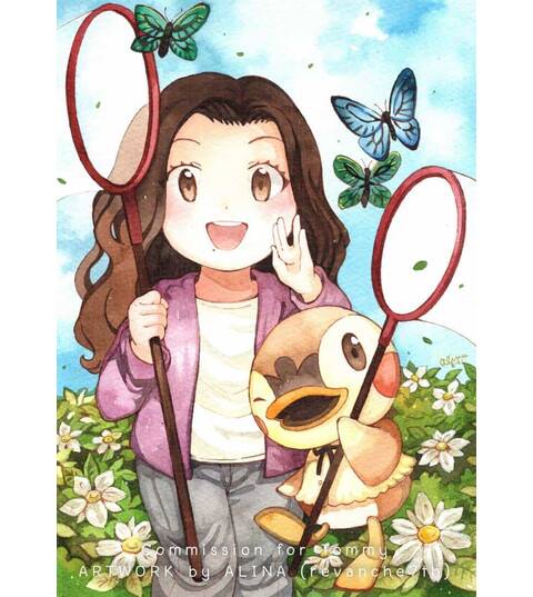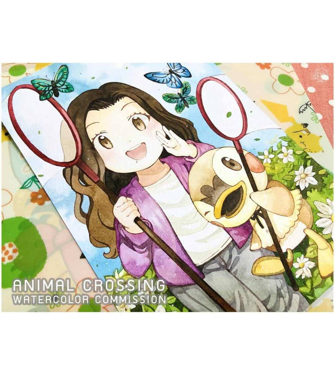 **Animal Crossing Watercolor Commission Anime Cute Kawaii Art Style Family Pet Memorial Gift with Simple Background ( CUSTOM ORDER )**