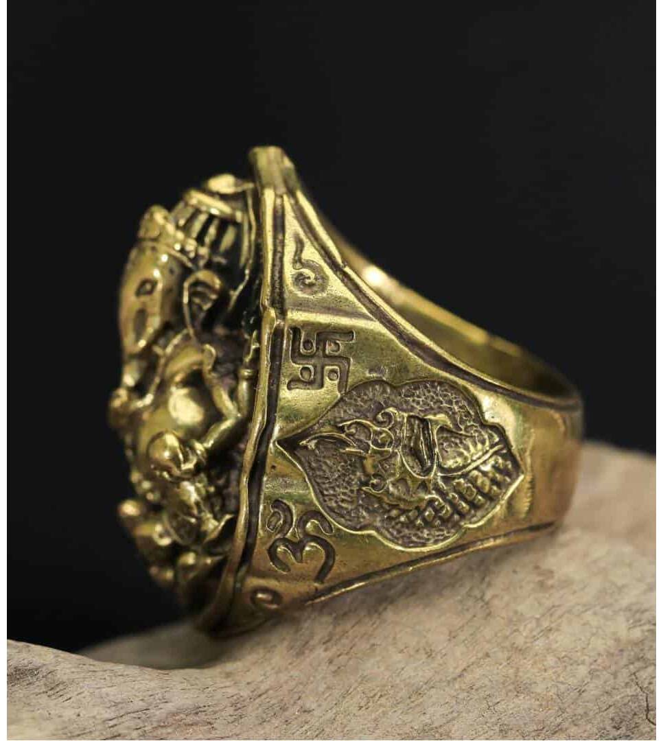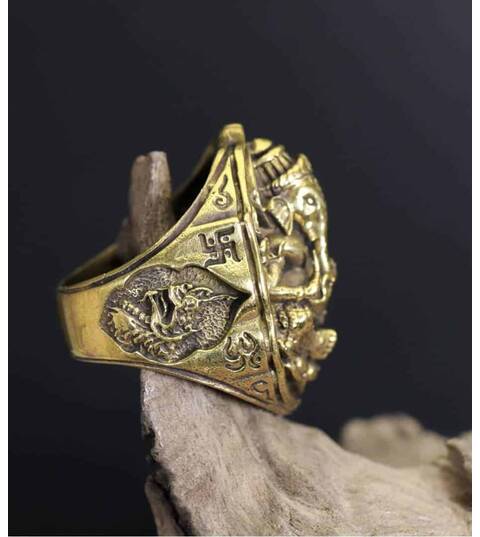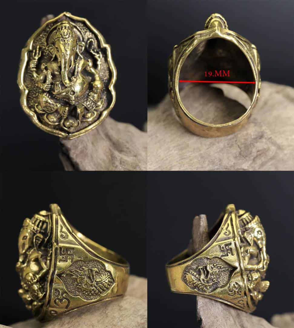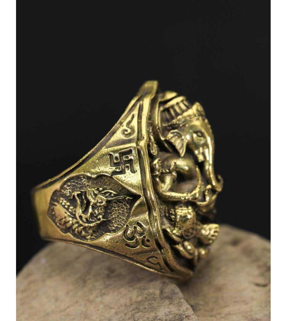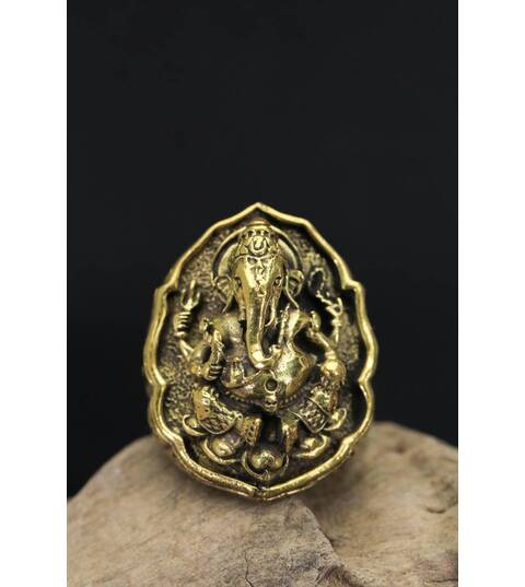 Ring God Lord Ganesh Elephant Ganesha Hindu figurine Brass deity god Protect Life Antique Rare Amulet Best Power Success Luck Nice Talisman