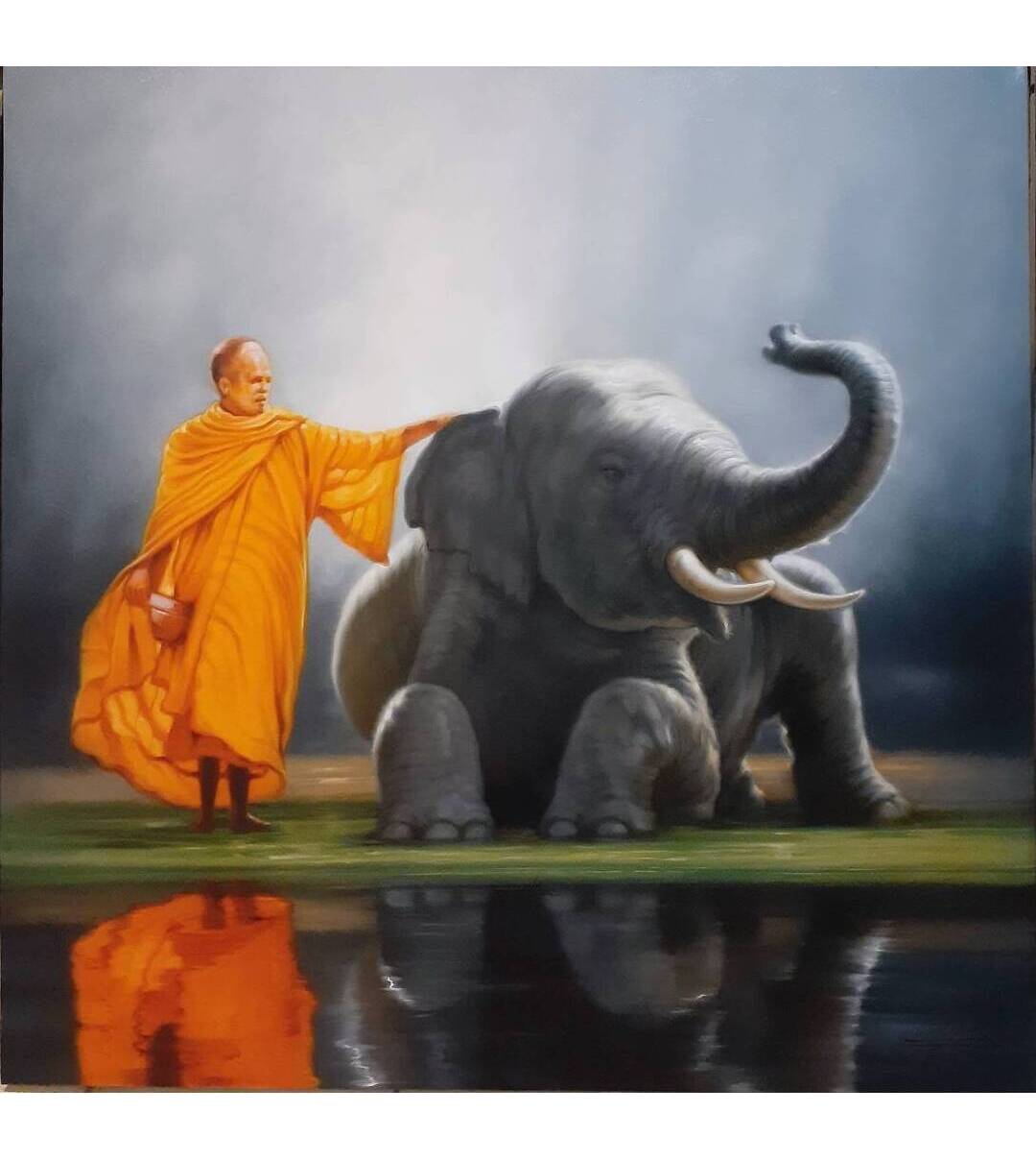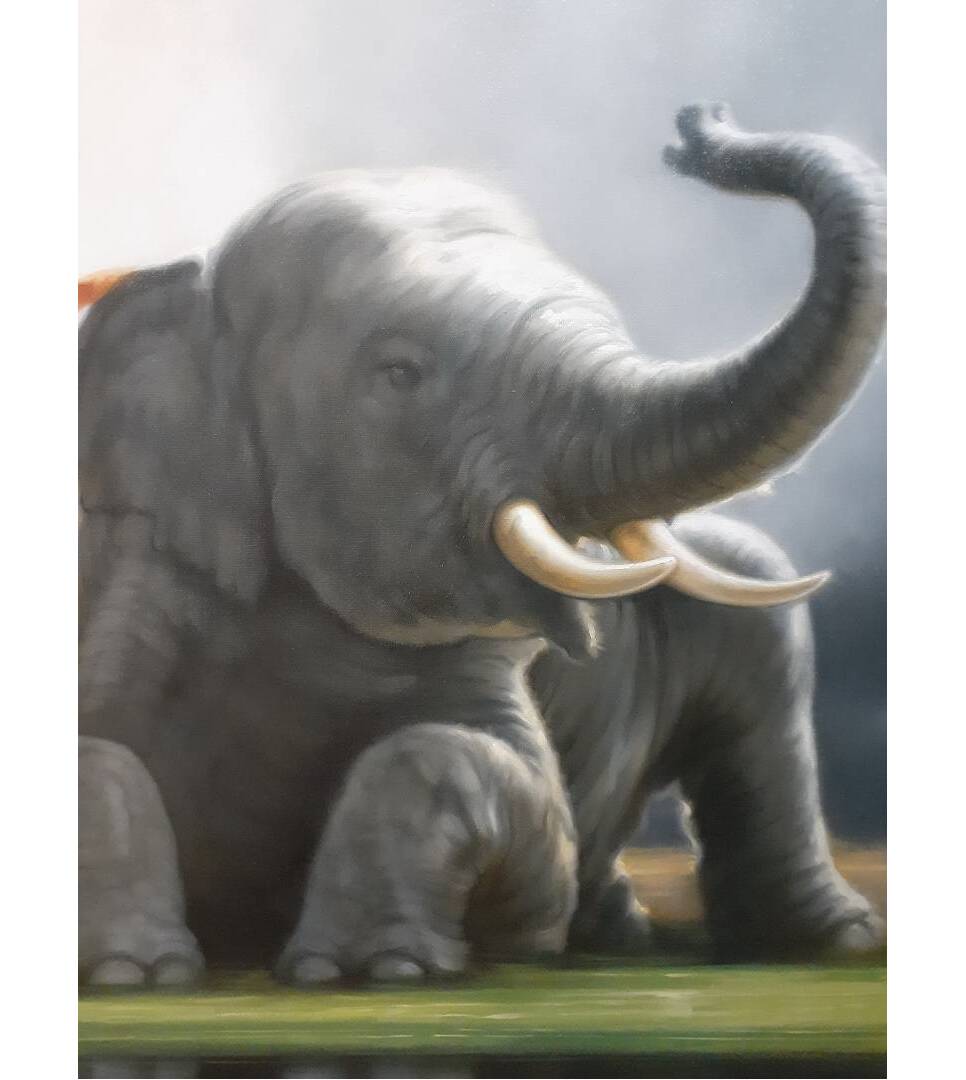 Elephant painting oil painting on canvas 100X100 cm.