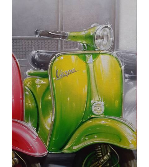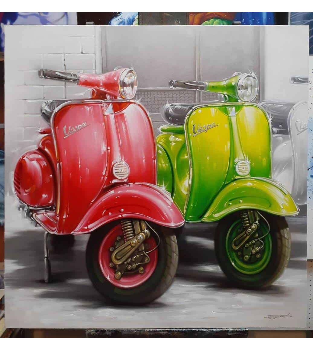 Vespa painting oil painting on canvas. Size 100X100 cm. The painting is ready and dry for shipping. The paintings have a white border for framing....