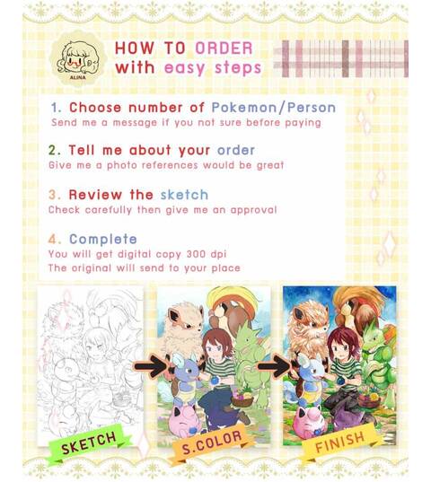 - After confirmed order, Do wait for my response I will begin sketch your order as soon as possible