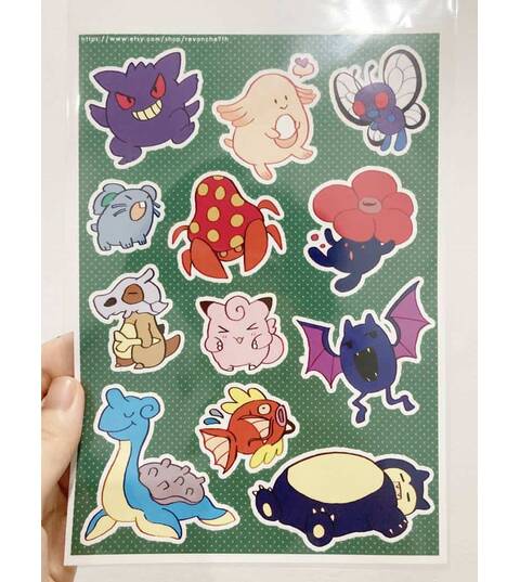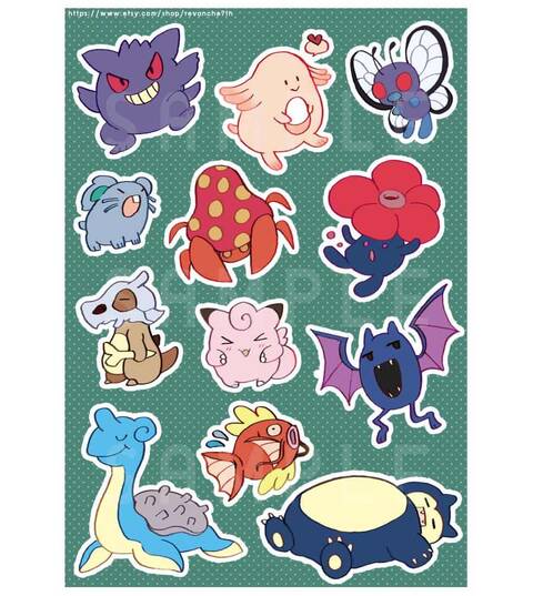 Pokemon 1st Gen Sticker A5 Lapras ,Snorlax ,Gengar ,Chansey ,Butterfree ,Nidoran ,Parasect ,Vileplume ,Cubone ,Clefairy ,Golbat and Magikarp