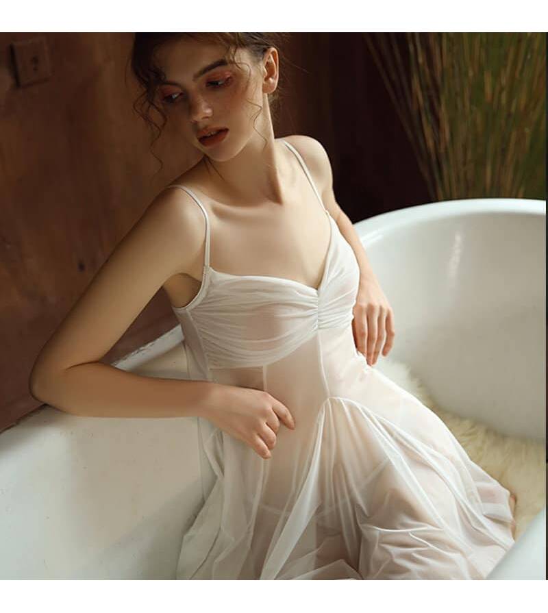 Elegant Sling Sleep Tops with Panty French Pajama Transparent Mesh Veil Back Sling Sleepwear, See Through Lingerie, Transparent Lingerie