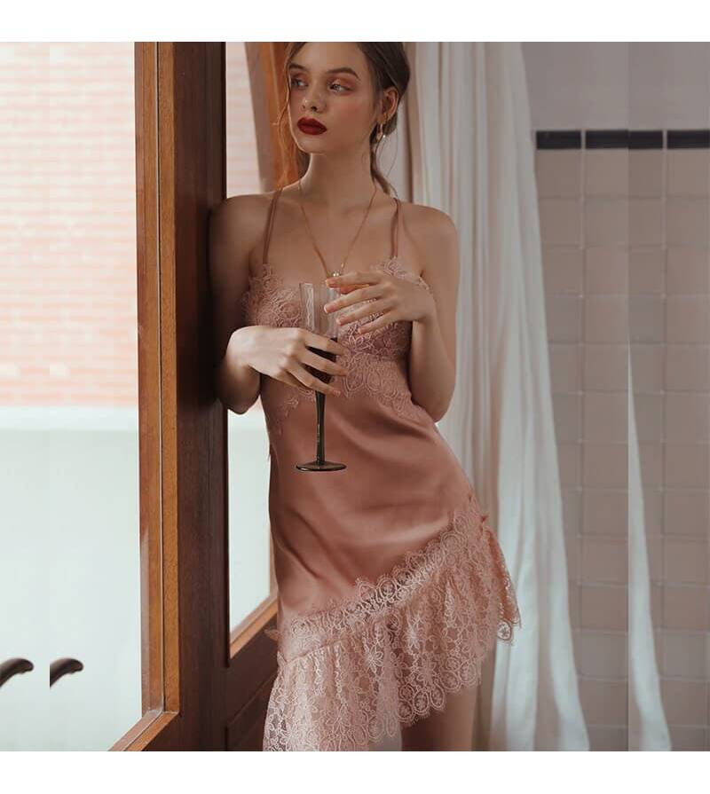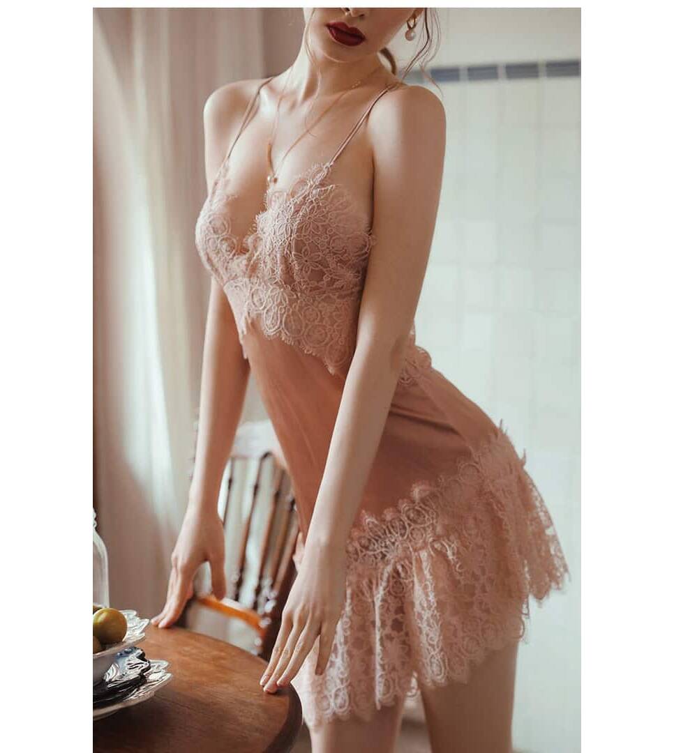 Erotic Pink Night Dress, Sexy Lingerie Party Invitation, Romantic Holiday Pajamas, Pink Lace Lingerie Dress, Sweet Pink LIngerie For Women