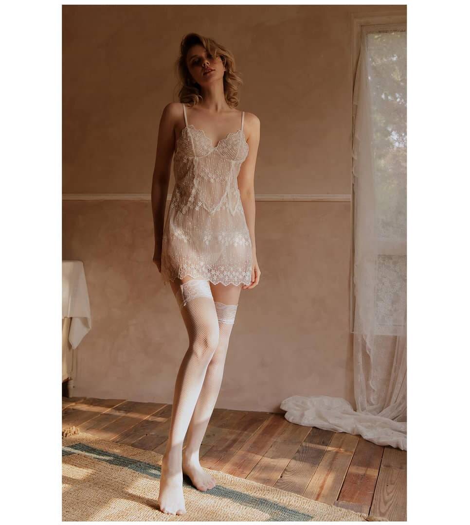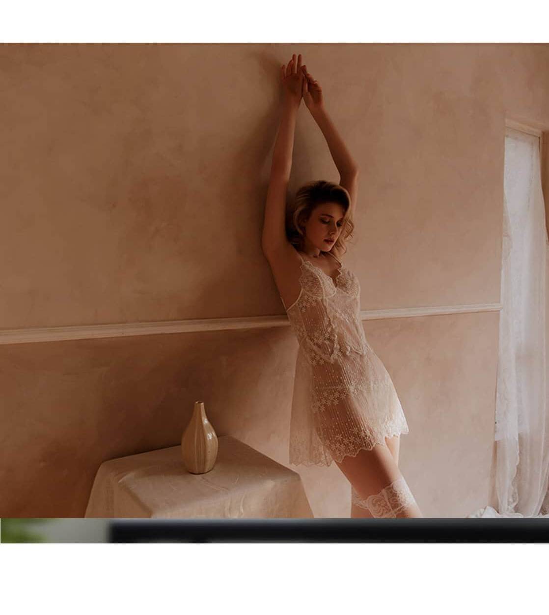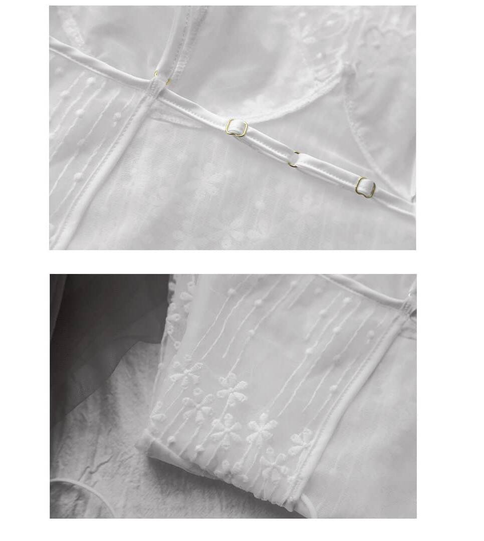Women Sleepwear Pure White Embroidery Floral Lingerie Female Temptation Strap Dress Lace Gauze Sexy Hollow Out Lingerie, See Through Lingerie