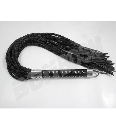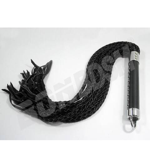 The leather heavy braided cat o’ nine (sometimes called cat of nine or cat o 9) tails whip has a punishing bite. The beautiful leather handle with the rope lace has also a stainless steel finish making this sex toy the envy of the serious whip enthusiasts in almost every dungeon.