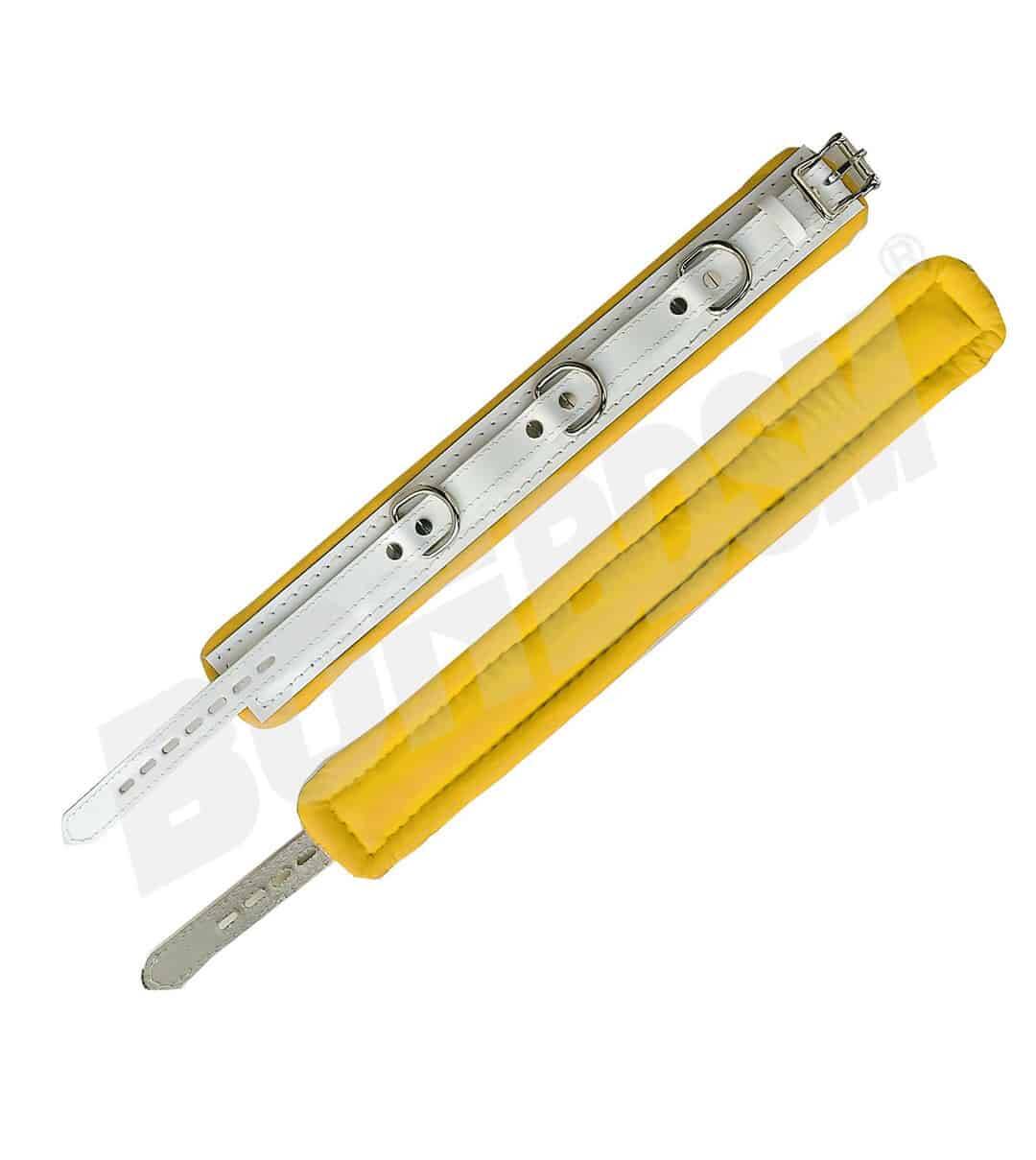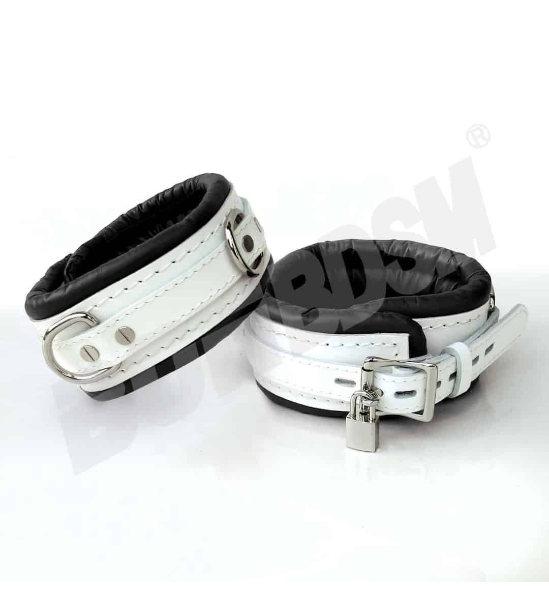 These high-quality handcrafted restraints cuffs ensure that you or your partner are under control! These premium genuine leather restraints are 2 3/4' (7 cm") inches wide and reinforced with three layers of leather.