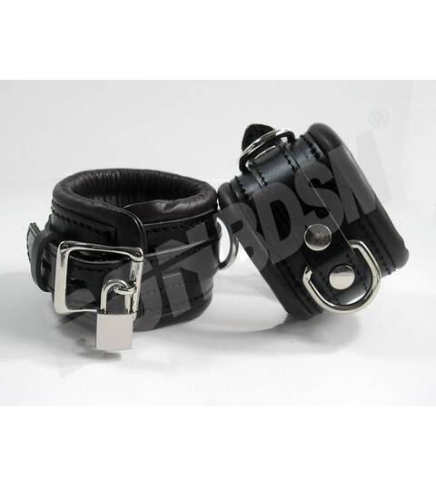 These high-quality handcrafted restraints cuffs ensure that your partner is under your control. Our EXTRA padded restraints will have you snugly locked! Soft padded leather lining keeps your wrists comfortable and protects your pressure points so you can struggle safely! These premium restraints are 2 3/4' (7 cm") width and reinforced with three layers of leather.