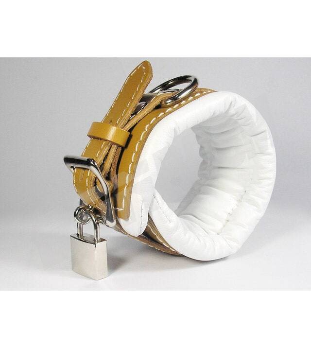 This high quality hand crafted medical restraints cuffs ensure that your partner is under your control. Our EXTRA padded restraints will have you snugly locked! Soft padded leather lining keeps your wrists comfortable and protects your pressure points so you can struggle safely! These premium restraints are 2.5' inch (6.5 cm") width, and reinforced with three layers of leather.