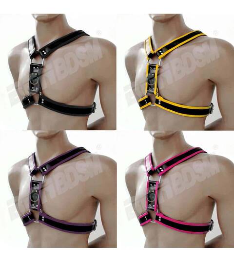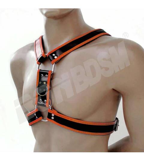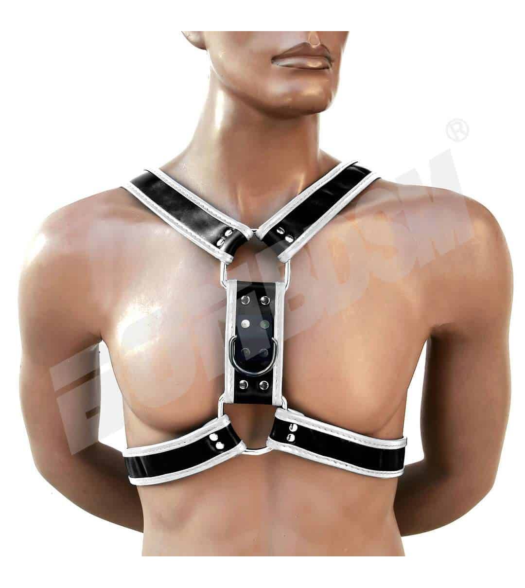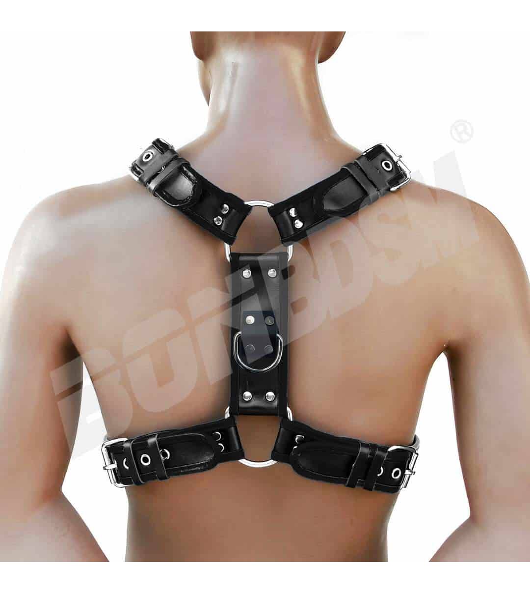 It's beautiful and sturdy, and it makes you look sexy and masculine. The unique design has a comfortable leather lining to protect your skin and to protect the leather harness from sweat (easy to clean). Thick 1 1/2 inches black leather straps with soft leather rolled edges. In the front and back, there are D rings for attaching a leash or other accessories.