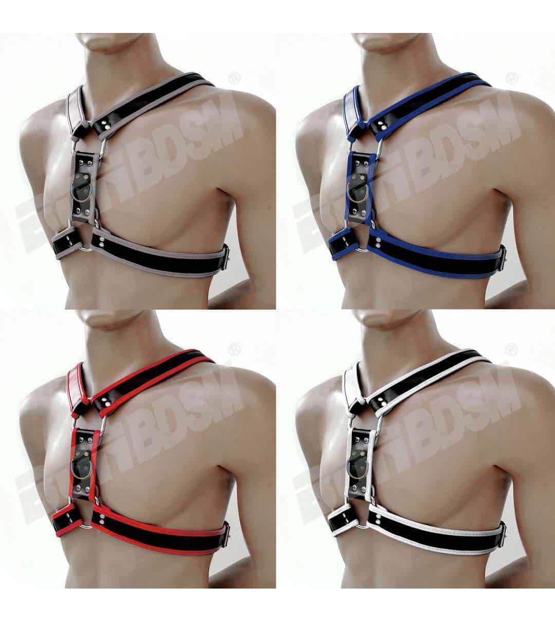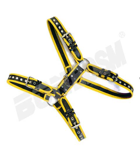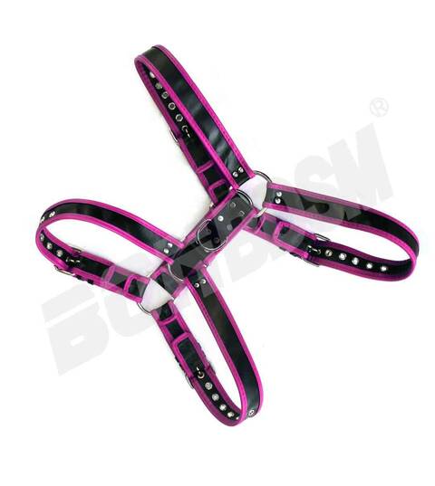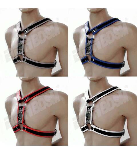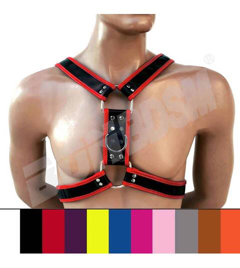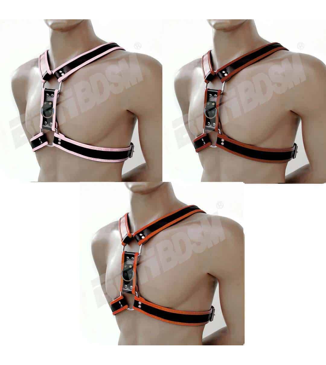 It's beautiful and sturdy, and it makes you look sexy and masculine. The unique design has a comfortable leather lining to protect your skin and to protect the leather harness from sweat (easy to clean). Thick 1 1/2 inches black leather straps with soft leather rolled edges. In the front and back, there are D rings for attaching a leash or other accessories.