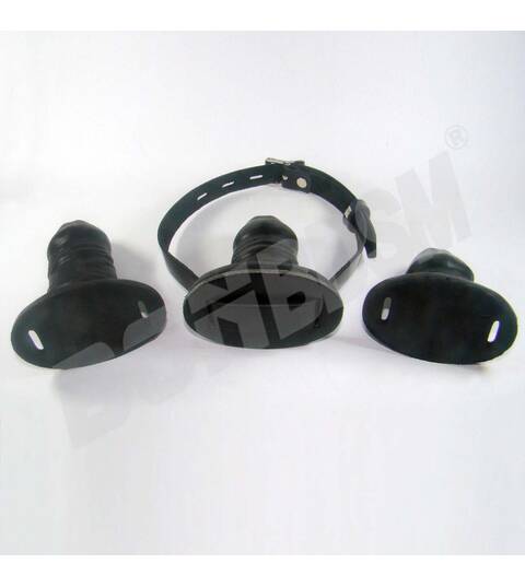 BONBDSM has invented the world first Silicone Deepthroat training gag! Our extra large Deepthroat training gag comes in three sizes, and it's made of a non-toxic, totally safe, 100% pure silicone. Our silicone has completely neutral taste and smell. The unique design is a delight, it's very simple to switch between the gag sizes using our thick and soft high quality leather belt.