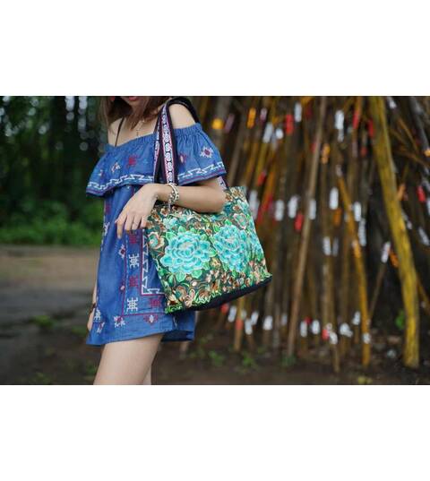 Ethnic Hobo Boho Asian Embroidered Thai Tote Shoulder Shoppers Hmong HandBag