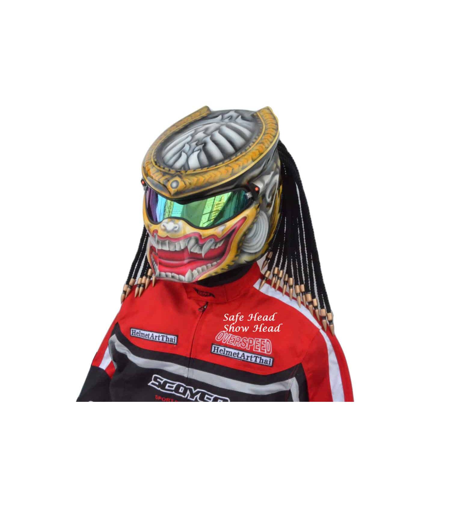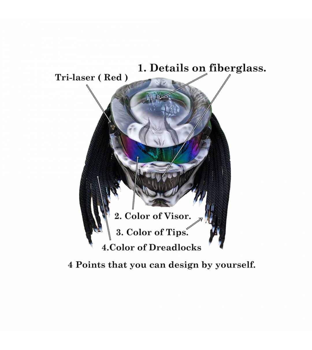 - 3 Choices of Dreadlocks: Black, Red, or White. ( Predator helmet )