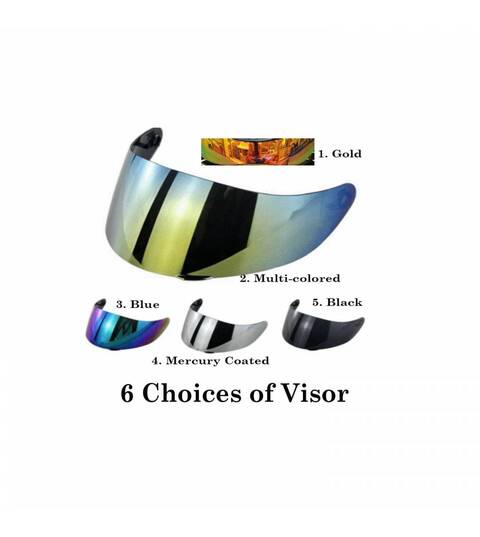 - 6 Choices of Visor: Black, Blue, Mercury coated, Gold, Multi-colored, Transparent.