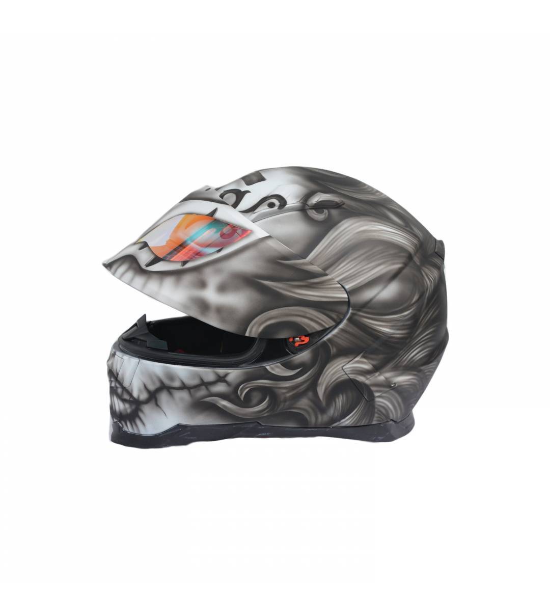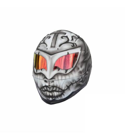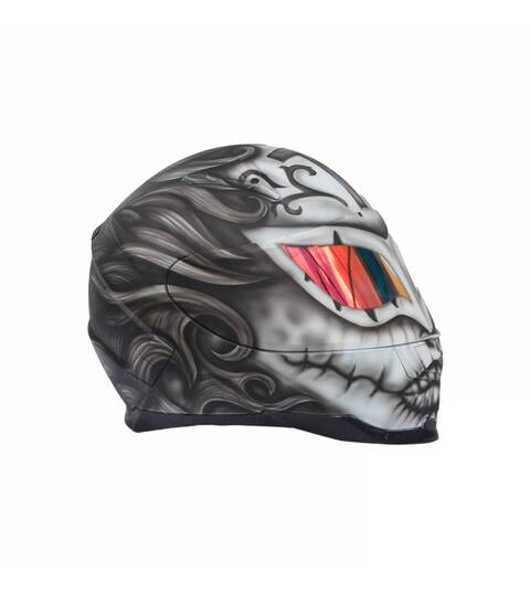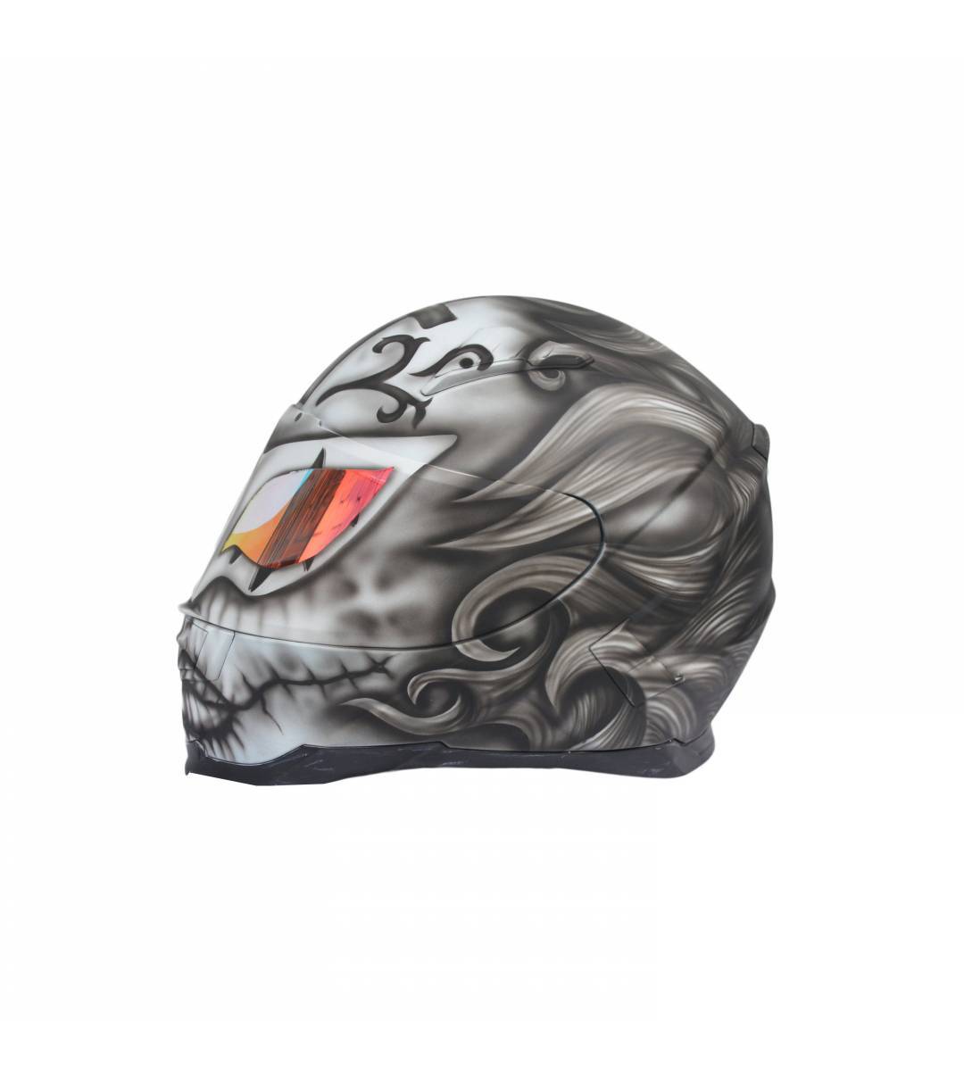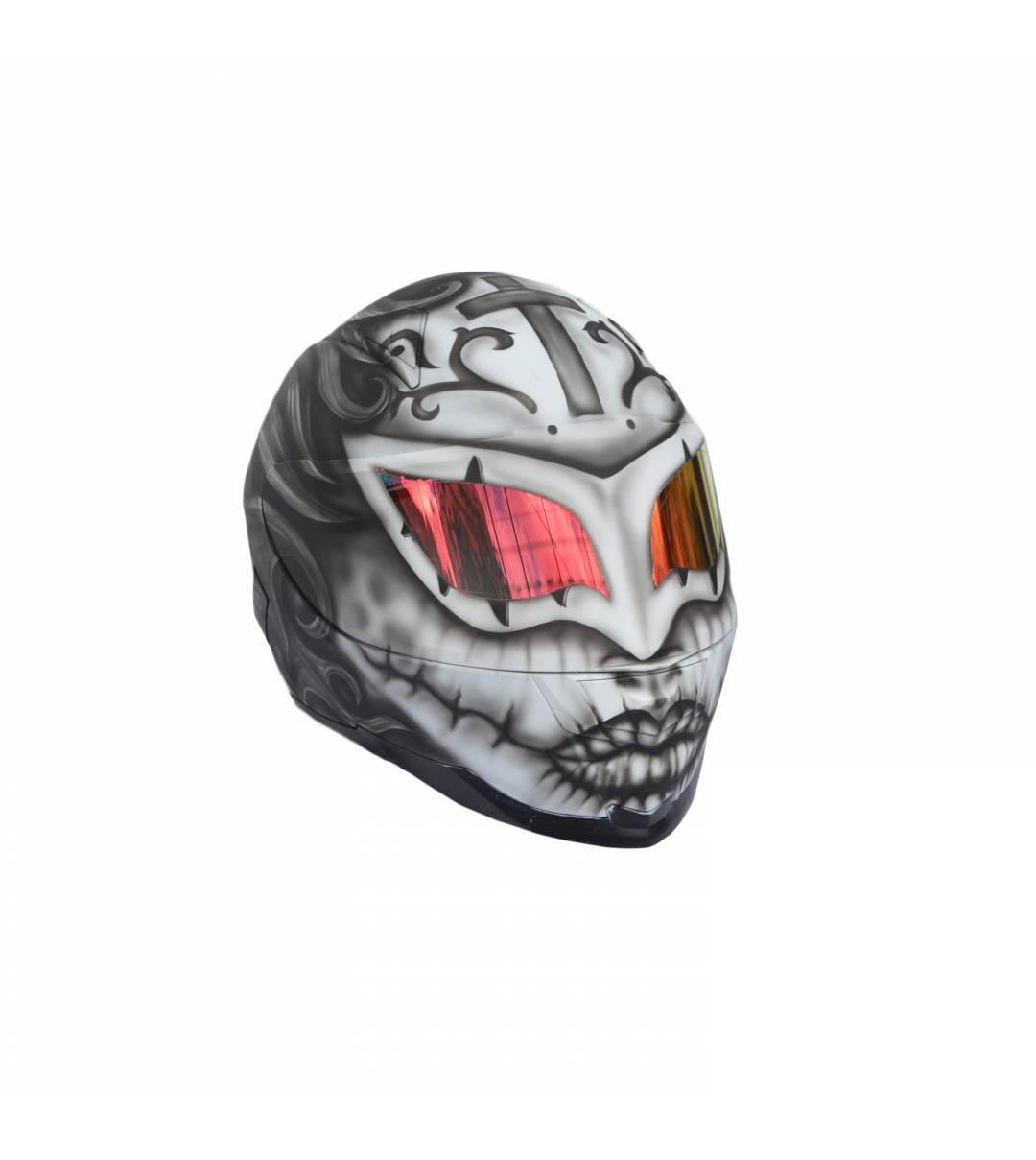 - Il se compose d'un casque de moto intégral peint à l'aérographe et certifié ECE R 22.05 ou DOT.