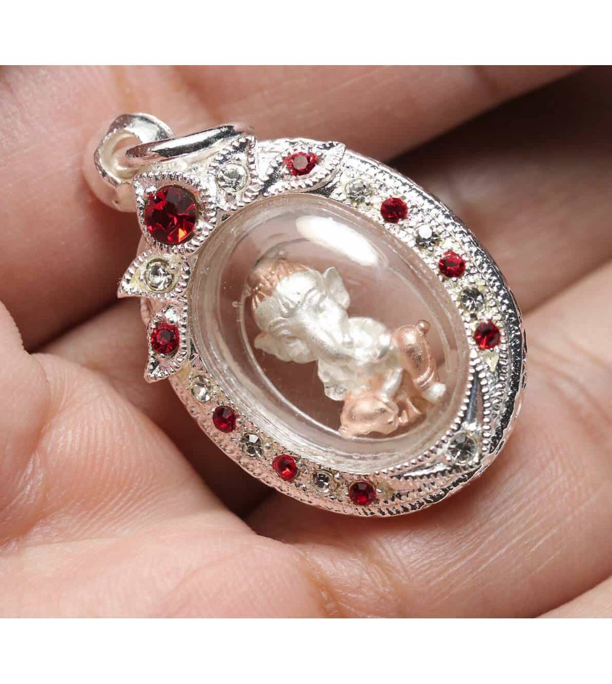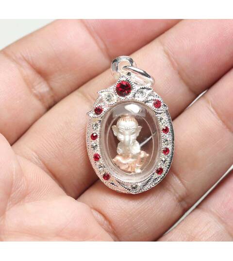 God Lord Ganesh Mini Statue Elephant Ganesha Hindu figurine Brass Statue Protect Life Amulet Power Success Luck business Jewelry Silver Plated