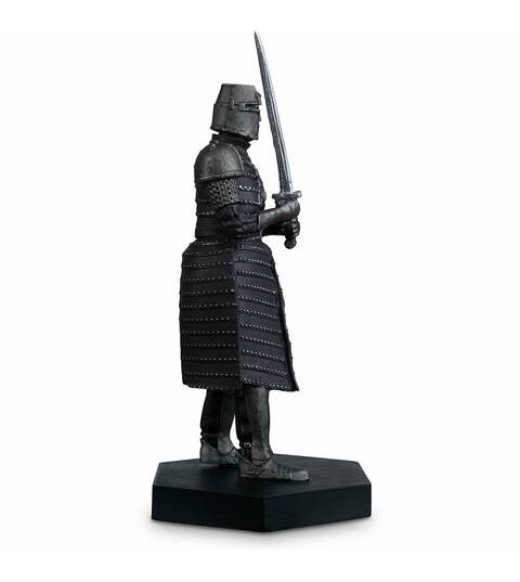 Cette figurine artisanale a été coulée dans une résine métallique spécialement formulée et peinte à la main, et montre l'un des shérifs de l'armée de Nottingham portant une armure du XIIe siècle avec l'emblème du shérif au centre de la poitrine, et il tient une épée dans son mains.