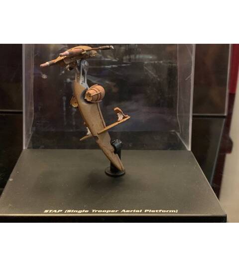 The DeAgostini - Altaya Star Wars 30 STAP single trooper aerial platform is a part of a collection of 60 models of ships and vehicles from the Star Wars universe. It is a 1:43 scale replica of the original prop used in the movie Star Wars: Episode I - The Phantom Menace. It is made of metal and plastic.