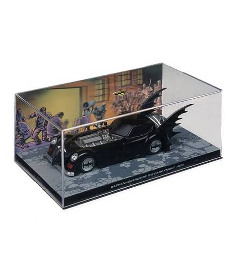 This Batman scale replica is a perfectly reproduced scale model in die-cast. This model comes with a unique display stand that features a 3D lenticular backdrop as well as a painted base, to recreate iconic moments from the Batmobile’s history.
