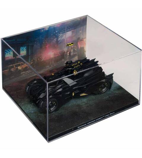 From the smash hit computer game, Arkham Knight comes this incredible dark take on Batman's trusted ride, the Batmobile! This Arkham Knight Batmobile from the Batman Automobilia Collection features a die-cast body, an arsenal of weapons including a Vulcan gun, 6cm cannon and riot suppressor, and is presented alongside a 3D lenticular featuring artwork from the video game.