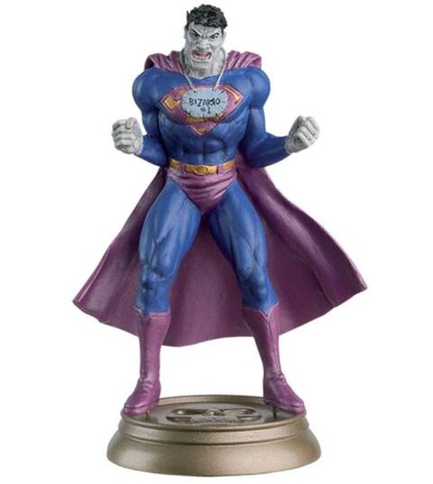 Bizarro debuted in Superboy #68 (cover-dated October 1958, but on sale in August[1]), writer Otto Binder casting the character as a Frankenstein's monster pastiche that possessed all the powers of Superboy. Shunned for his unenviable appearance, the teen version of Bizarro only appeared in a single comic book story. An adult version appeared around the same time in the Superman daily newspaper comic strip written by Alvin Schwartz, debuting in Episode 105: "The Battle With Bizarro" (strips 6147–6242: August 25, 1958 to December 13, 1958). According to comics historian Mark Evanier, Schwartz long claimed that he originated the Bizarro concept prior to the character's appearance in Superboy.[2] The newspaper storyline introduced the strange speech patterns that became synonymous with the character, with all of Bizarro's comments meaning the opposite (e.g. "bad" means "good"). The newspaper version wore a "B" on his chest, as opposed to Superman's distinctive "S".[3]