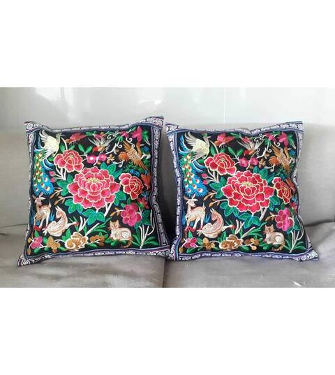 2 Hmong Thai Embroidered Hobo Boho Cushion Pillow Covers