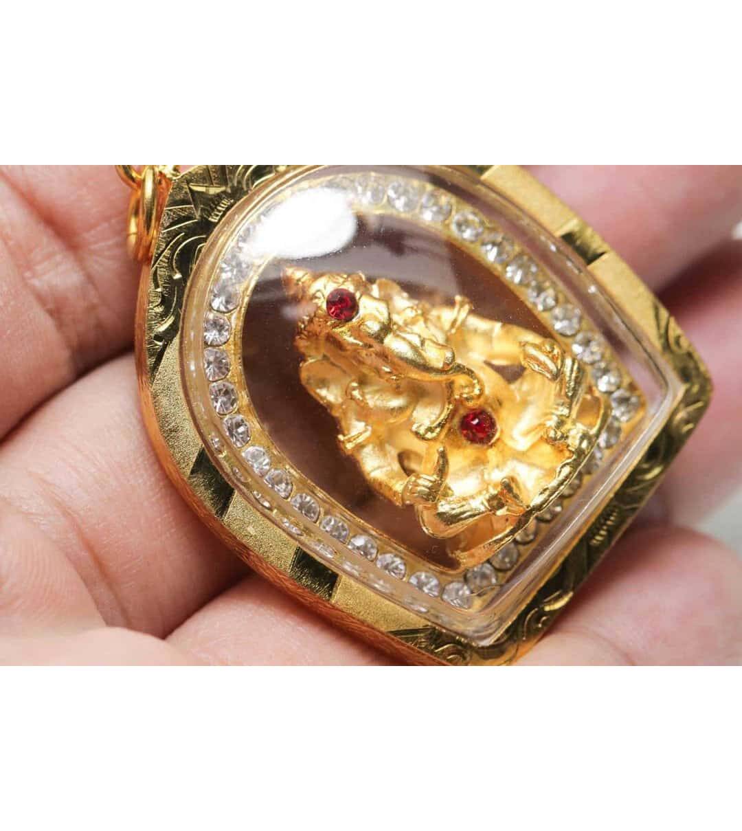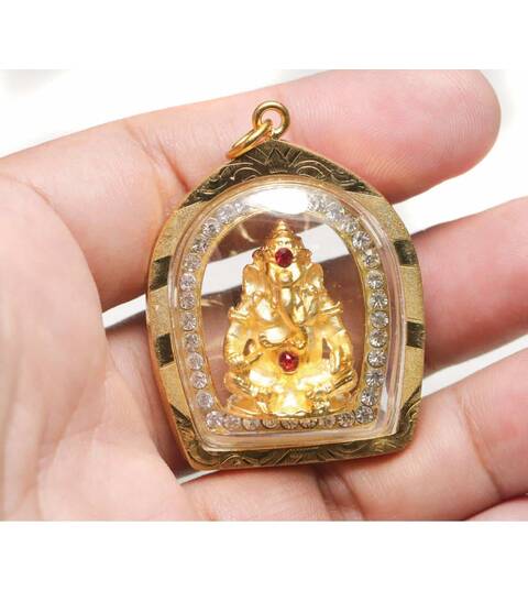 God Lord Ganesh Mini Statue Elephant Ganesha Hindu figurine Brass Statue Protect Life Amulet Power Success Luck business Jewelry Gold Plated