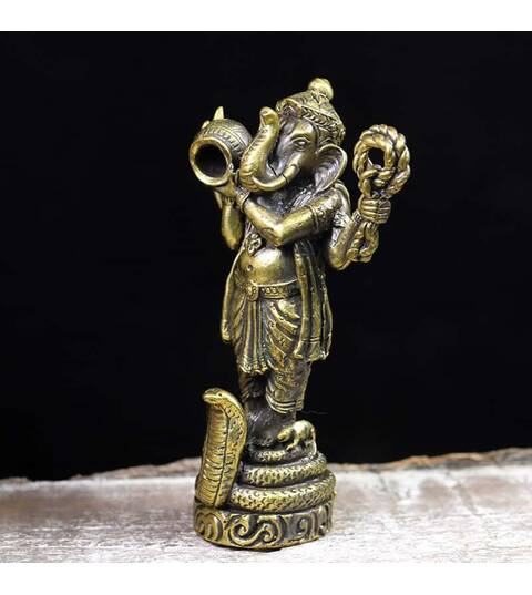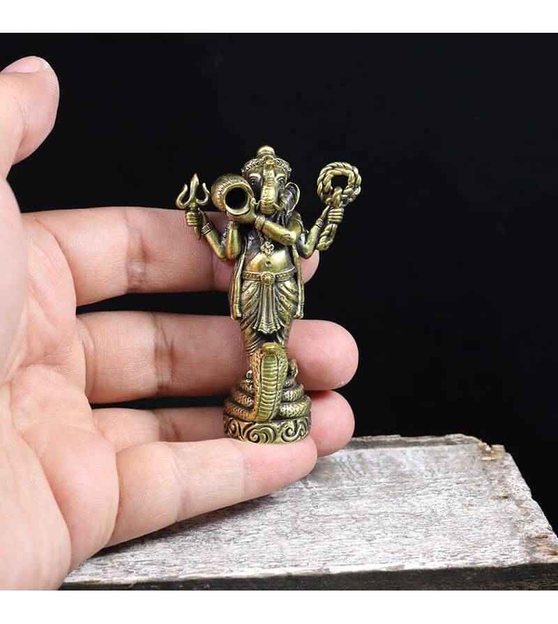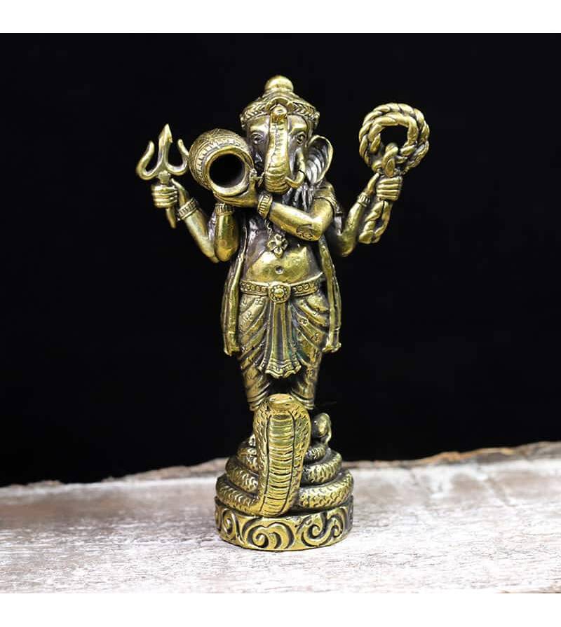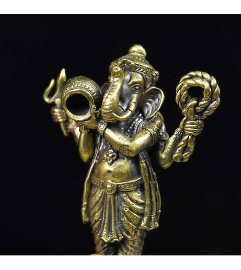 God Lord Ganesh Statue Elephant Ganesha Hindu figurine Brass Statue Protect Life Antique Rare Amulet Best Power Success Luck Free Shipping
