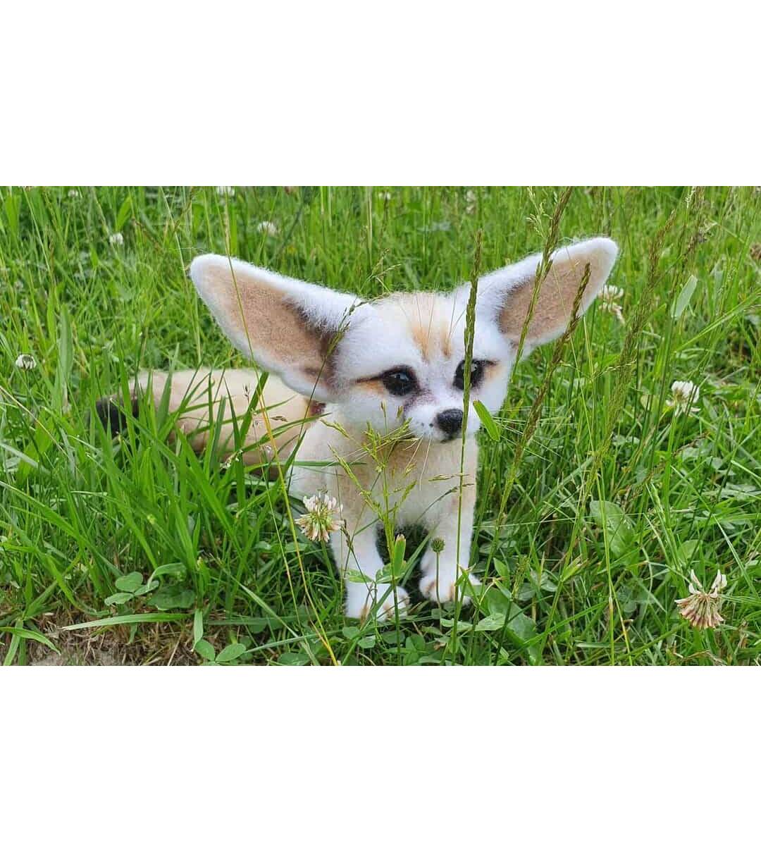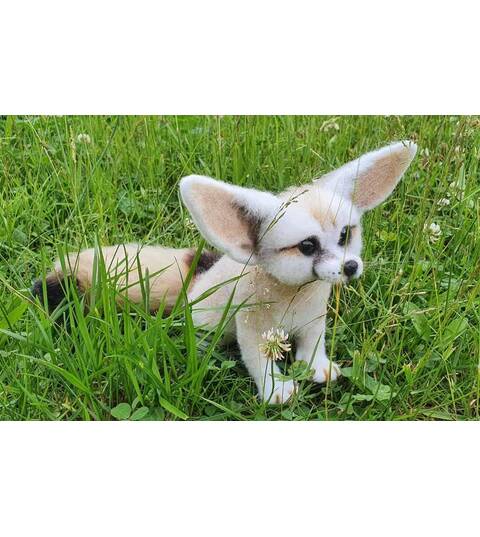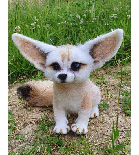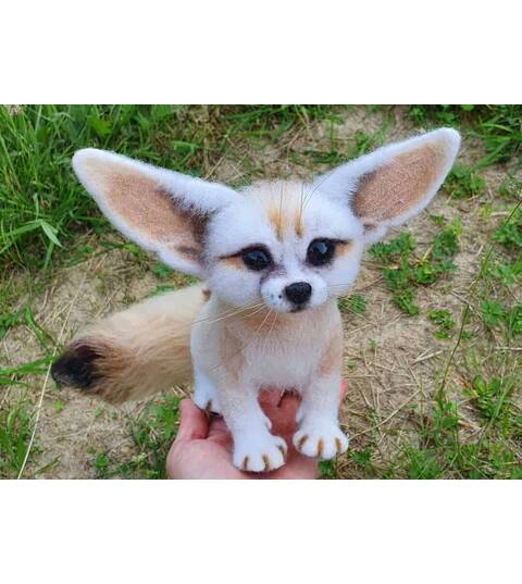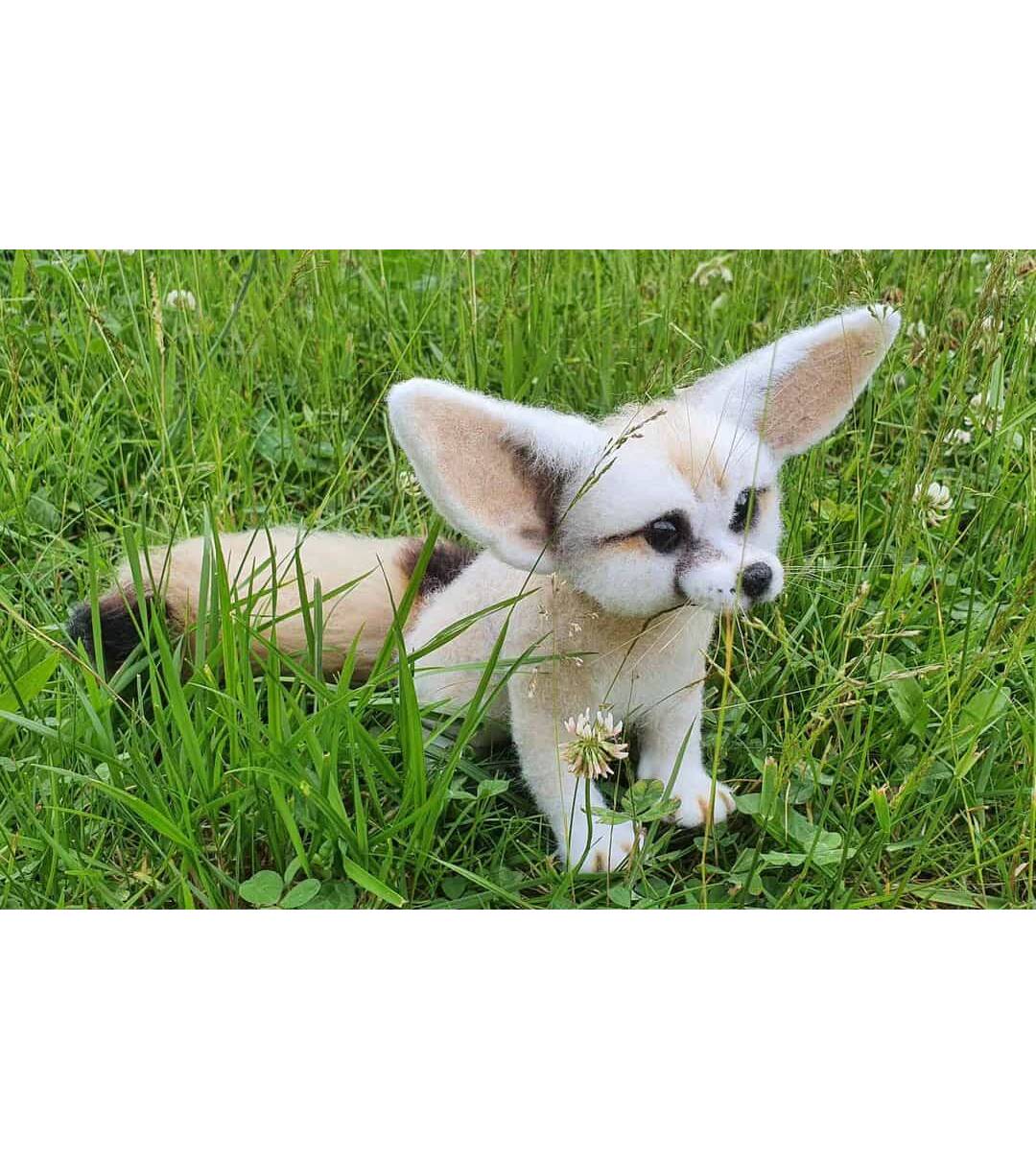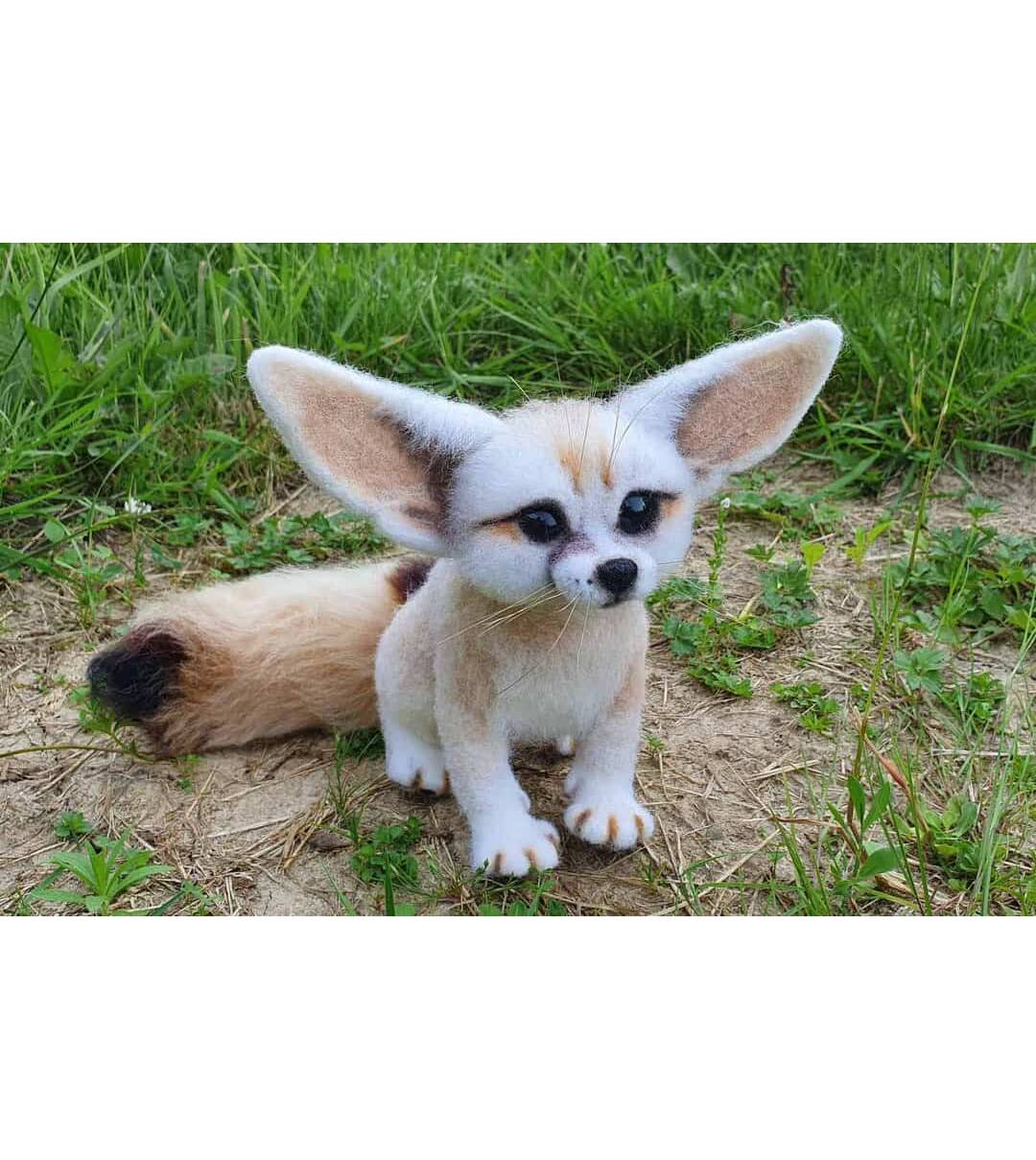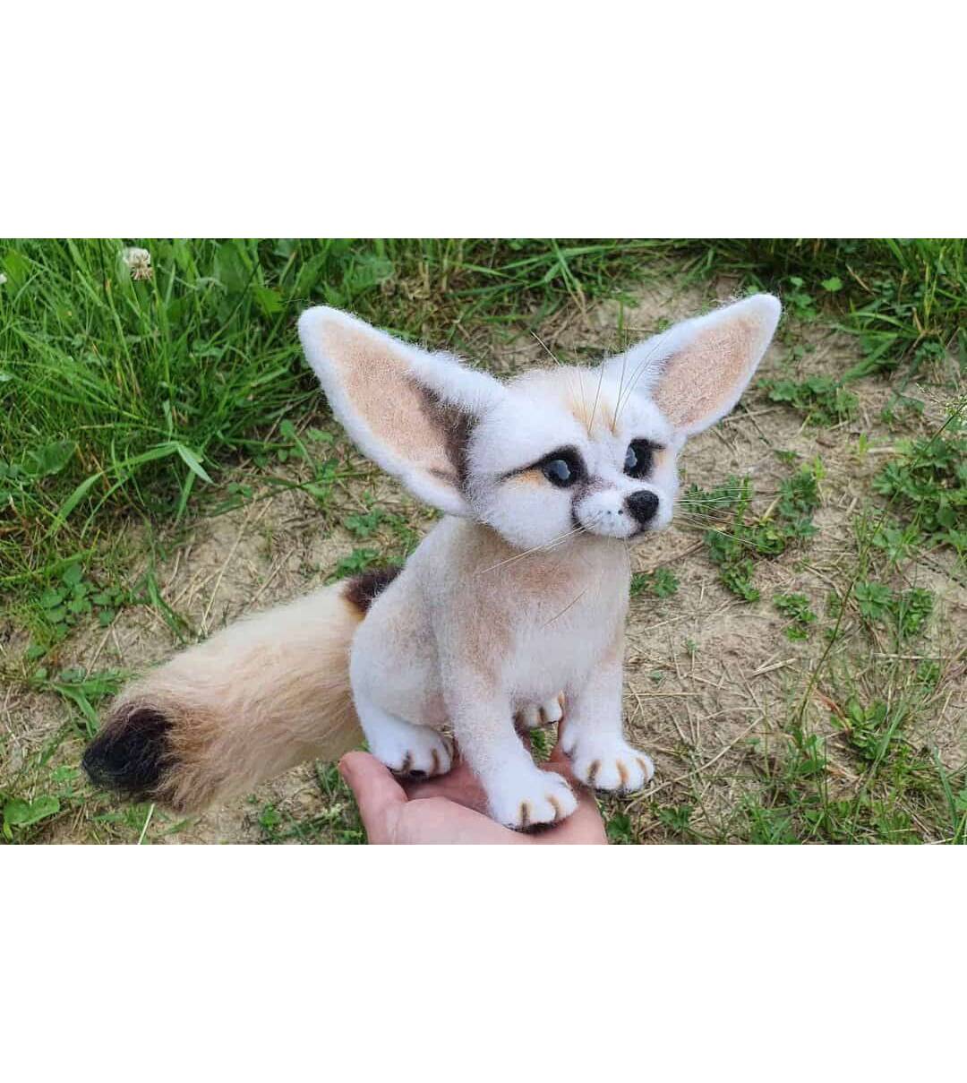 Desert fox Fennec. Natural wool figurine for interior decoration.