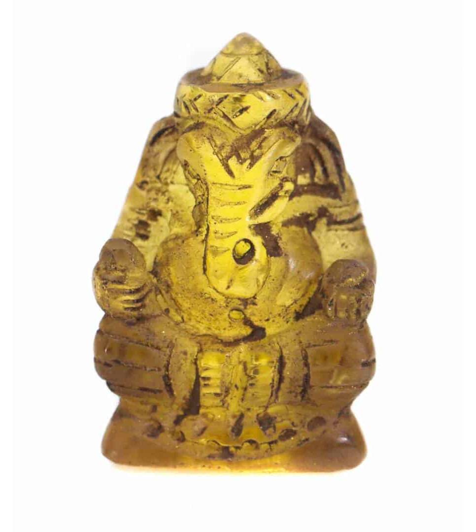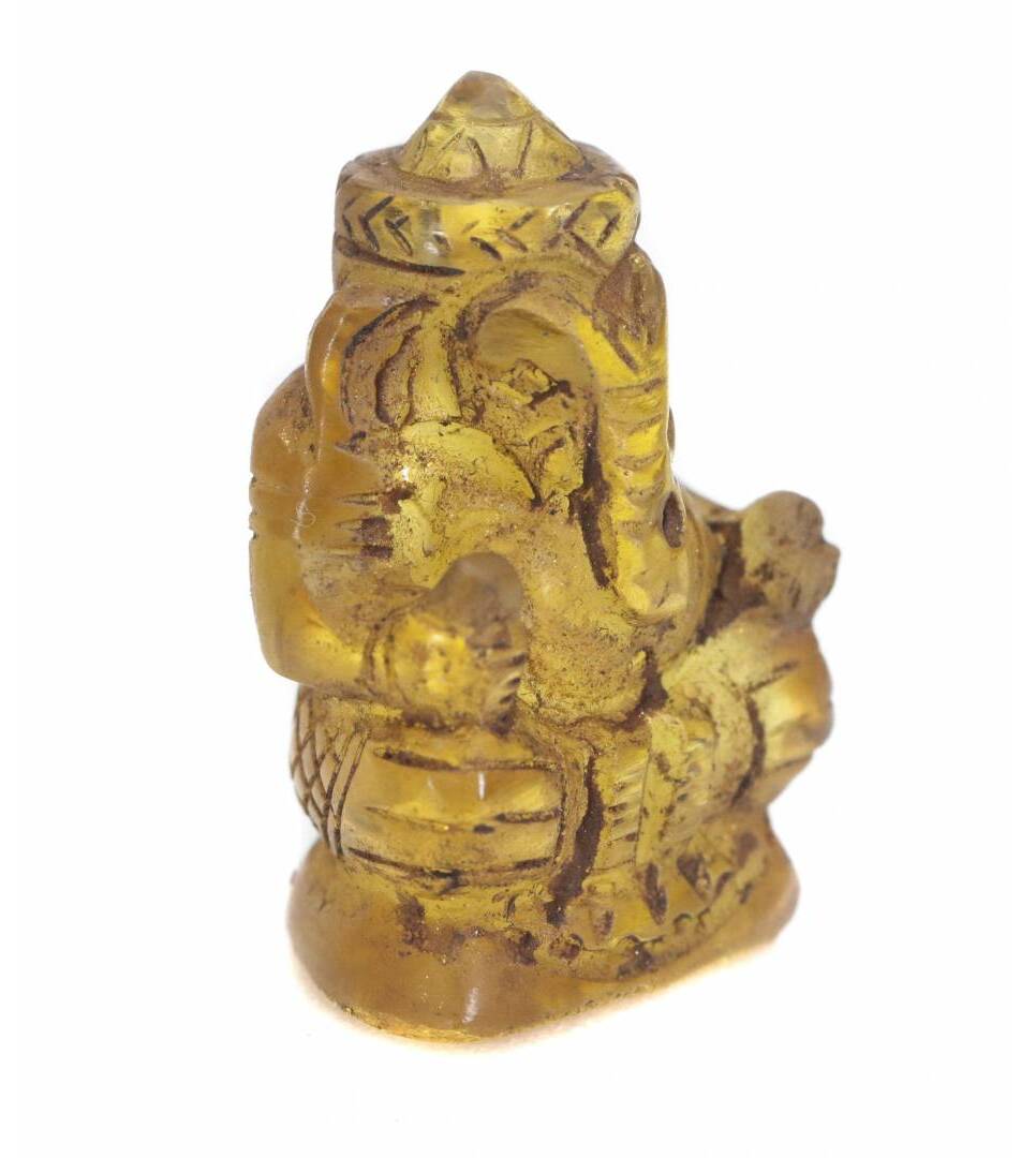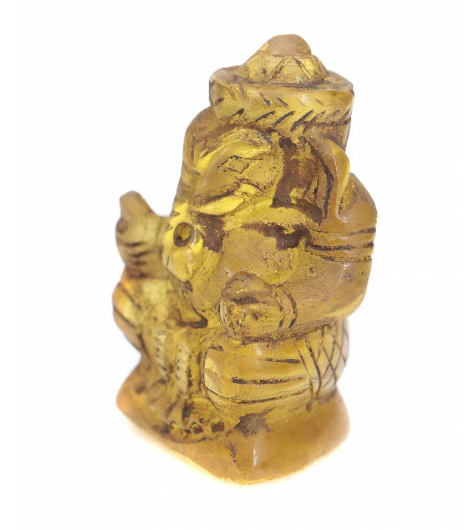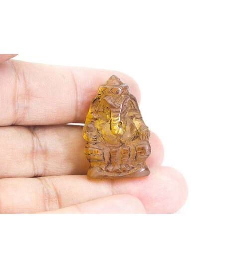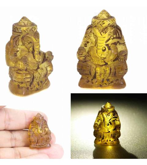 Yellow Ganesh Carve Transparent Handmade Mini Hindu Statue God Lord Ganesha figurine Old Protect Life Good Business Lucky Charm Pendant