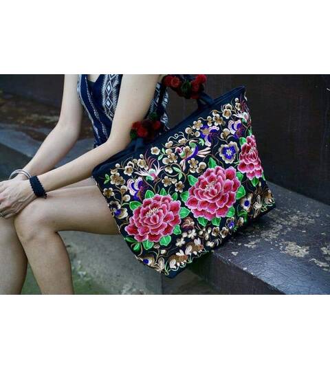 Ethnic Hobo Bohemian Embroidered Thai Tote Shoulder Shoppers Hmong Handbag