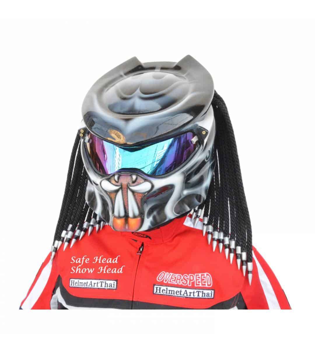 - It consists of lightweight airbrushed fiberglass with a full face motorcycle helmet that has ECE R 22.05 or DOT Certification.