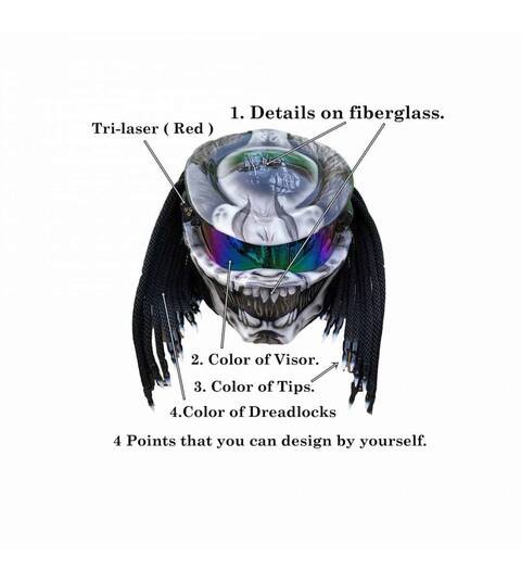 - 3 Choices of Dreadlocks: Black, Red, or White. ( Predator helmet )