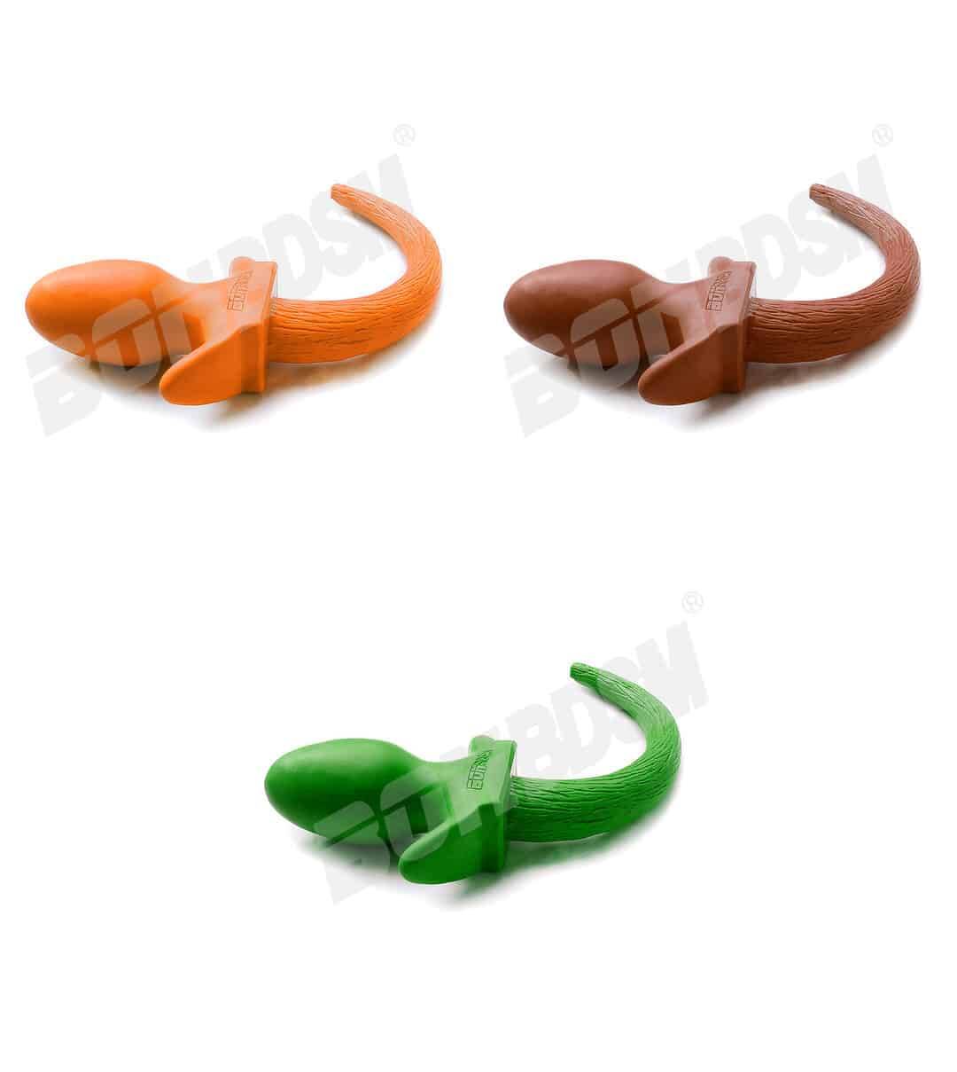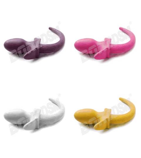 There are a lot of dog butt plug form rubber around, but they all crack easy, have nasty taste and smell bad. BONBDSM have developed a handmade premium grade silicone butt plug puppy-tail in three sizes.