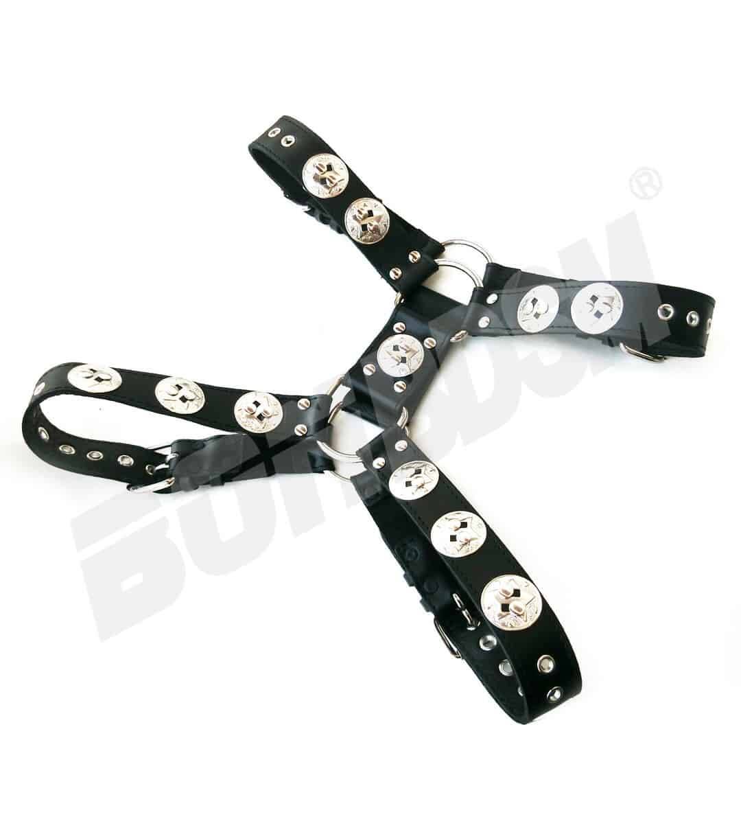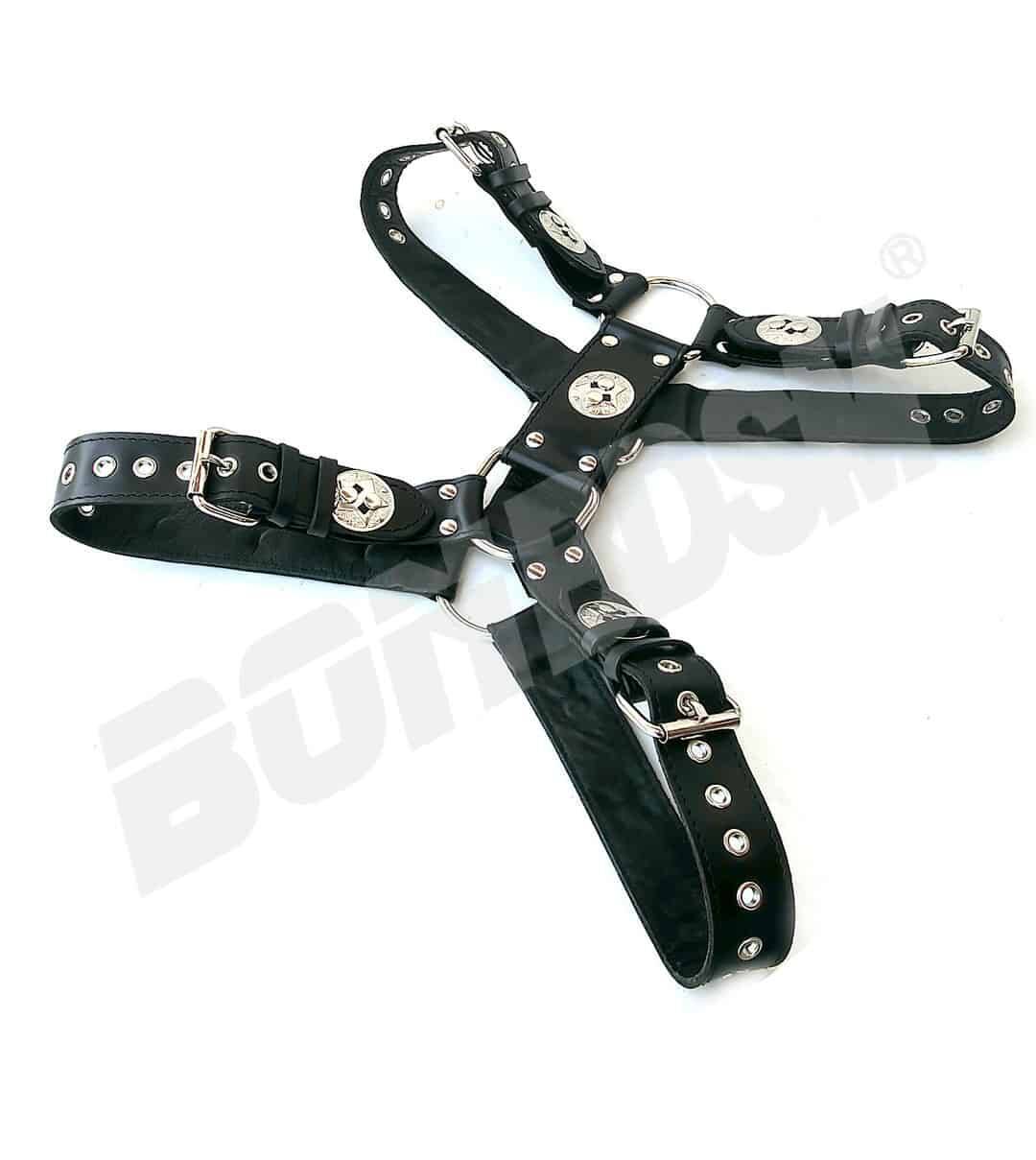 This sturdy top quality harness makes you look sexy and masculine — gorgeous solid heavy-duty leather, 1 1/2 inches straps, with rolling buckles and D rings. The harness has a comfortable leather lining to protect your skin and to clean sweat easily.