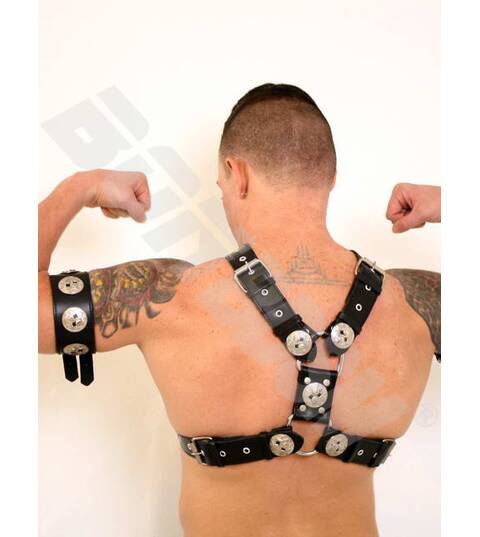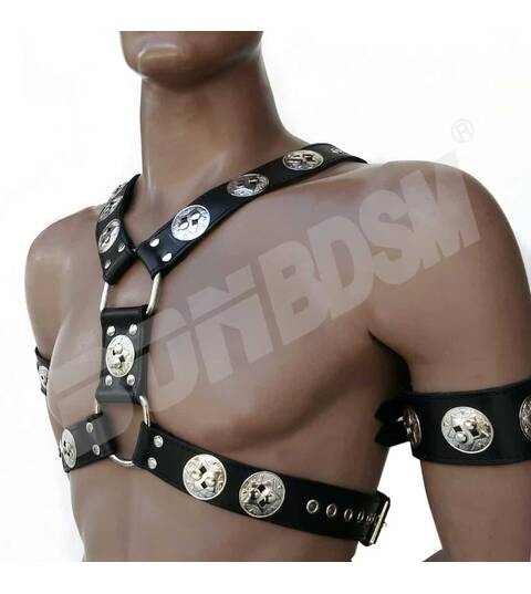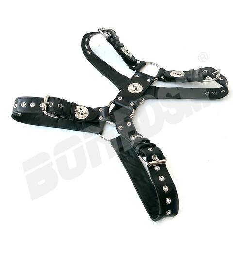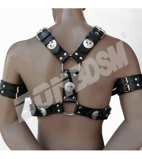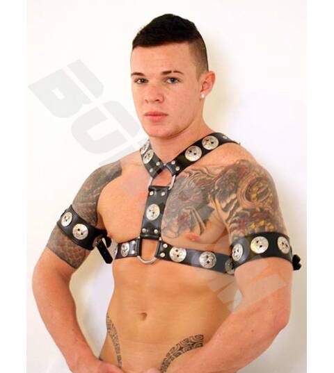 This stunning Gladiator Chest Harness is the ultimate head-turner! PLEASE NOTE, THIS HARNESS IS NOT INCLUDING THE BICEPS STRAP BELTS!!! This sturdy top...