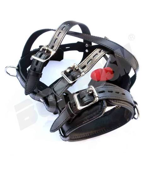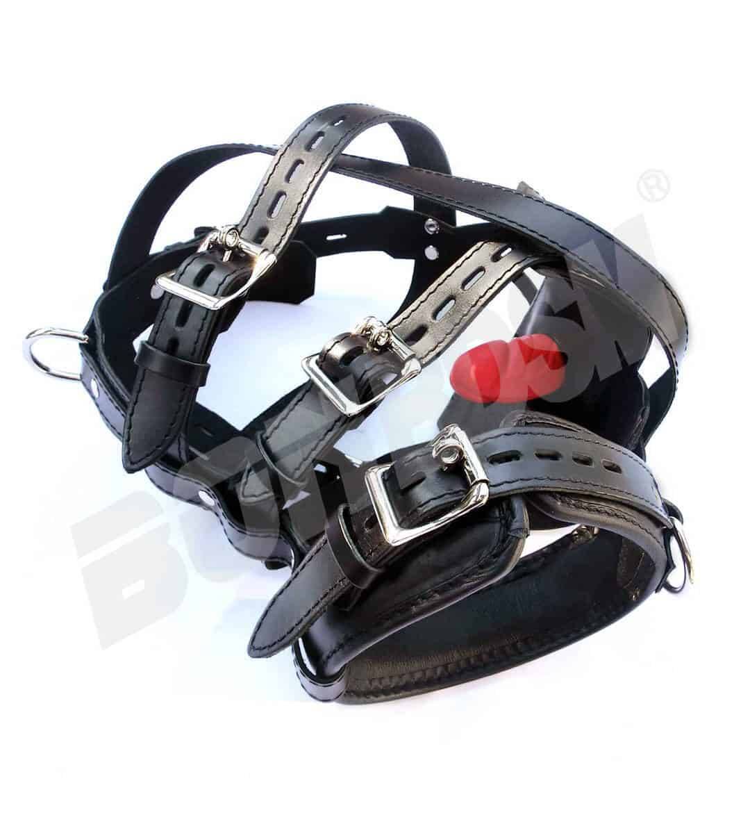 Our Leather Muzzle Head Harness will keep their mouth sealed! It is made to the same superb quality standard as all of our leather. With an exceptional fit, outstanding durability, and an attractive design, this fine leather muzzle is the sexiest looking muzzle we have ever made!!!