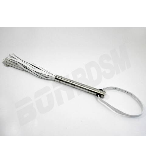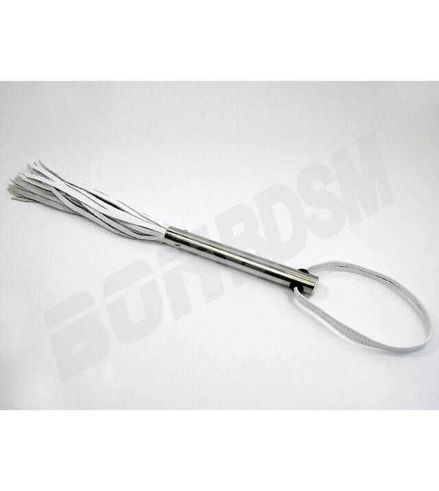 Enjoy flogging pain and pleasure with this incredible 15' inch/38 cm" long leather whip with 24 tails. The beautiful stainless steel handle is a beauty to hold. Choose between soft or hard tails depending on your game. Comes in black, red or white color. You will love the finishing touches on this beautiful hand made stylish whip.